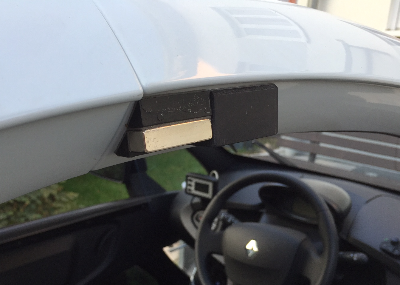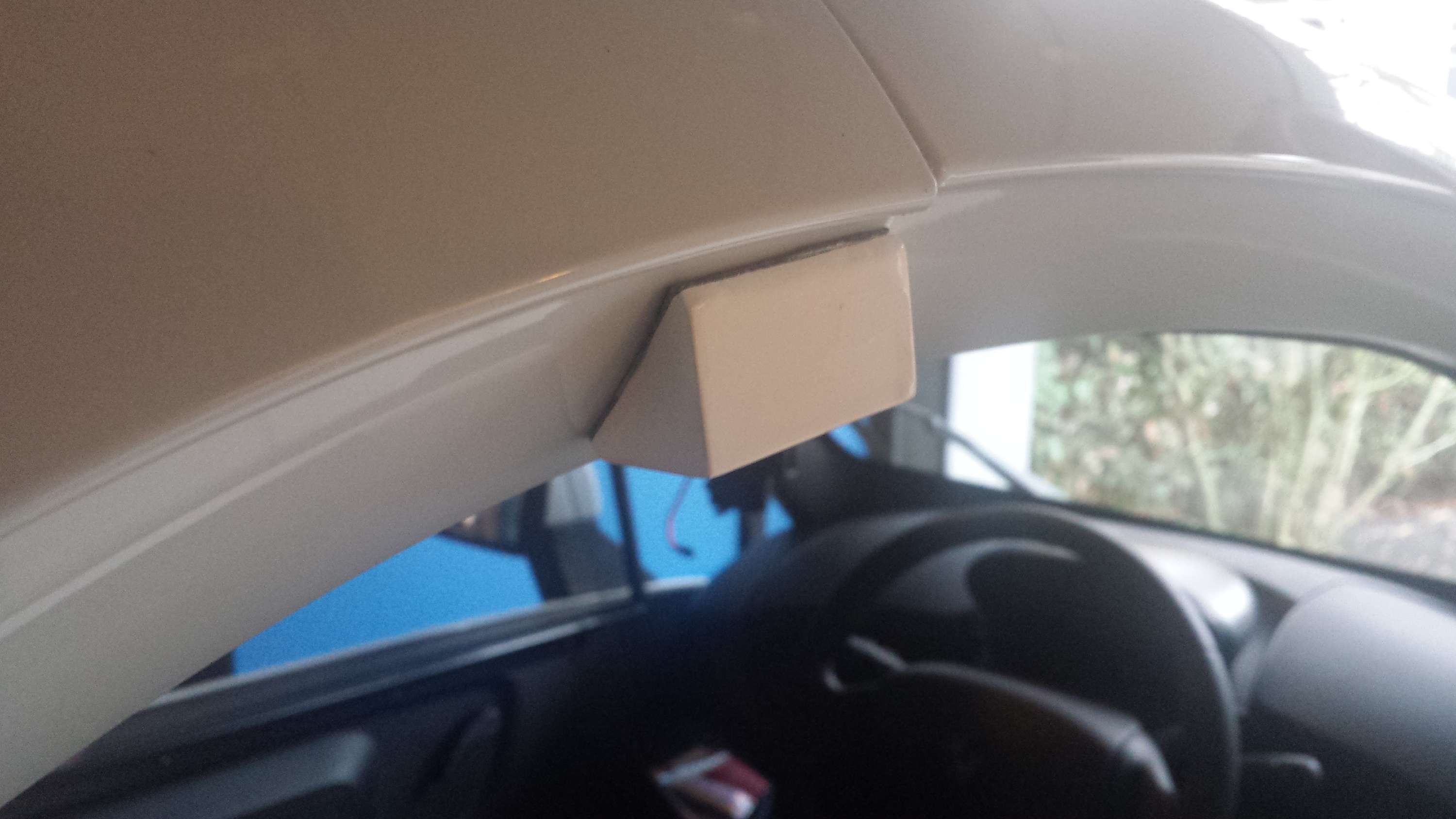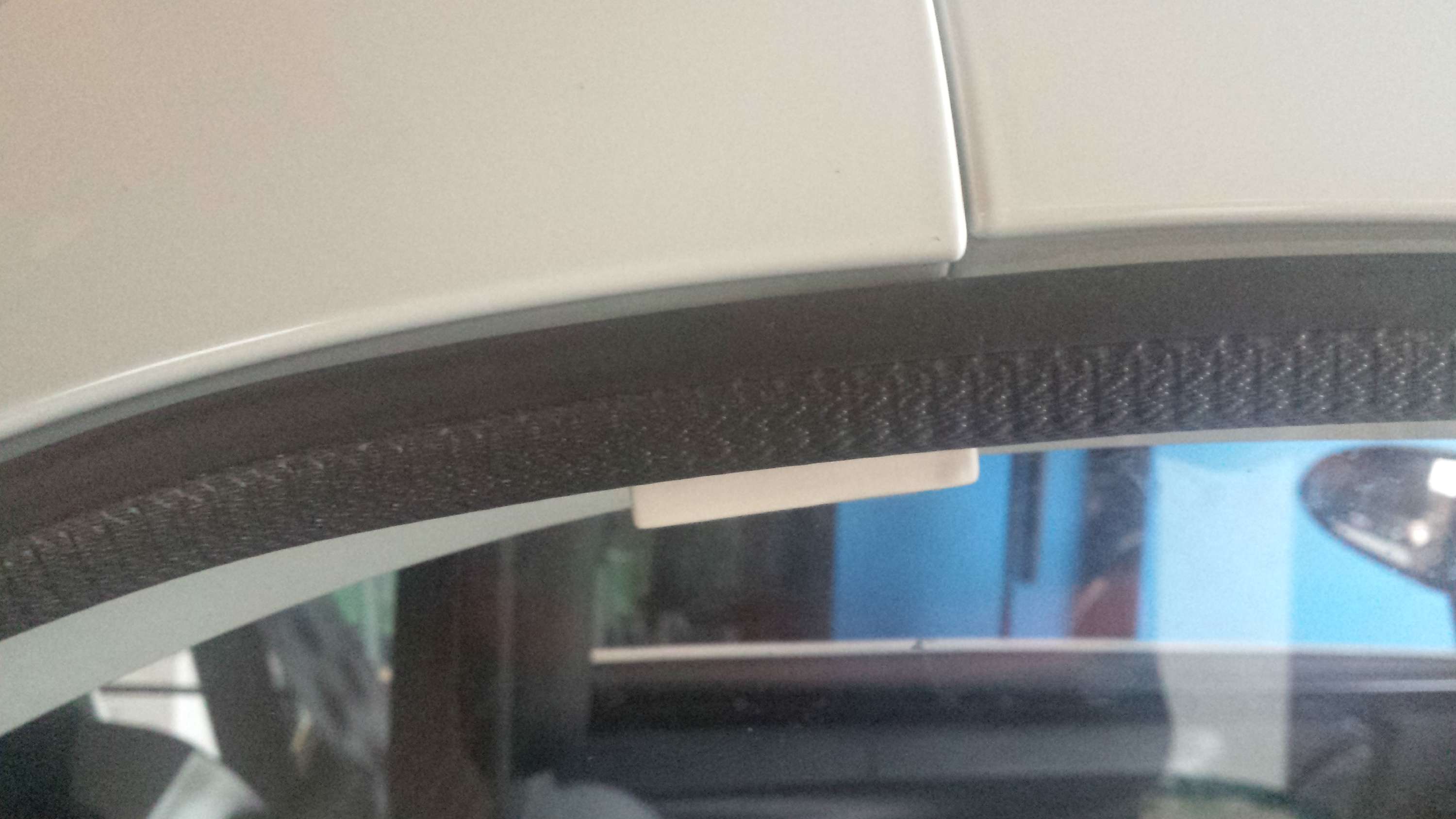 Hier meine "in montiert". Geschliffen und in Wagenfarbe lackiert. Haltekraft nicht so stark wie die originalen, aber aus meiner Sicht reicht es. Dafür zieht die Scheibe nicht so stark, dass sich das Klebeband löst
