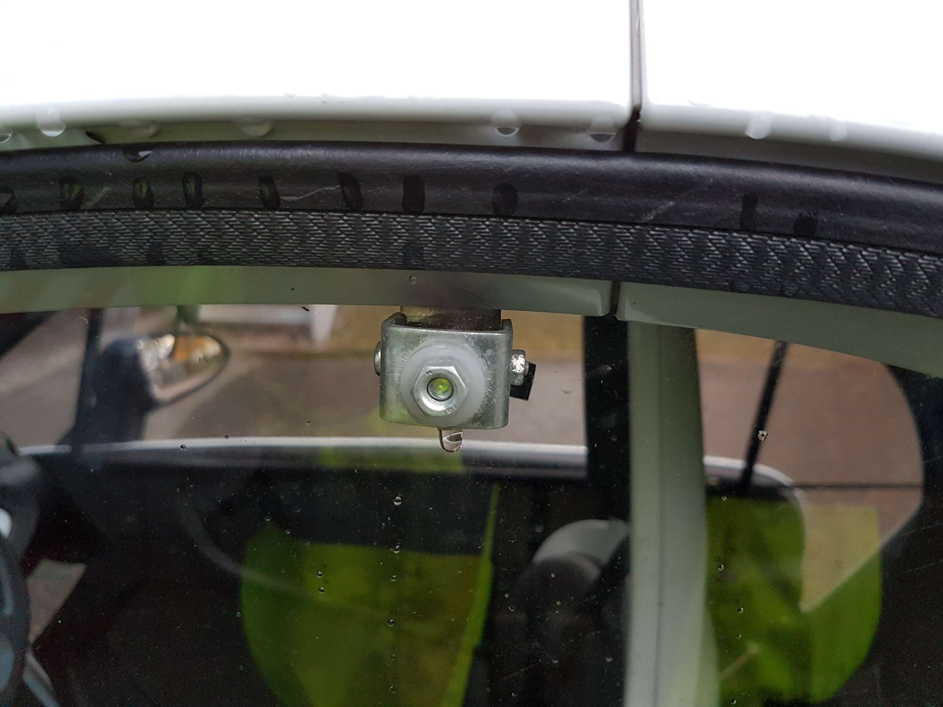 Kleines Loch in die Scheibe und so eine Gummilasche drangeschraubt.