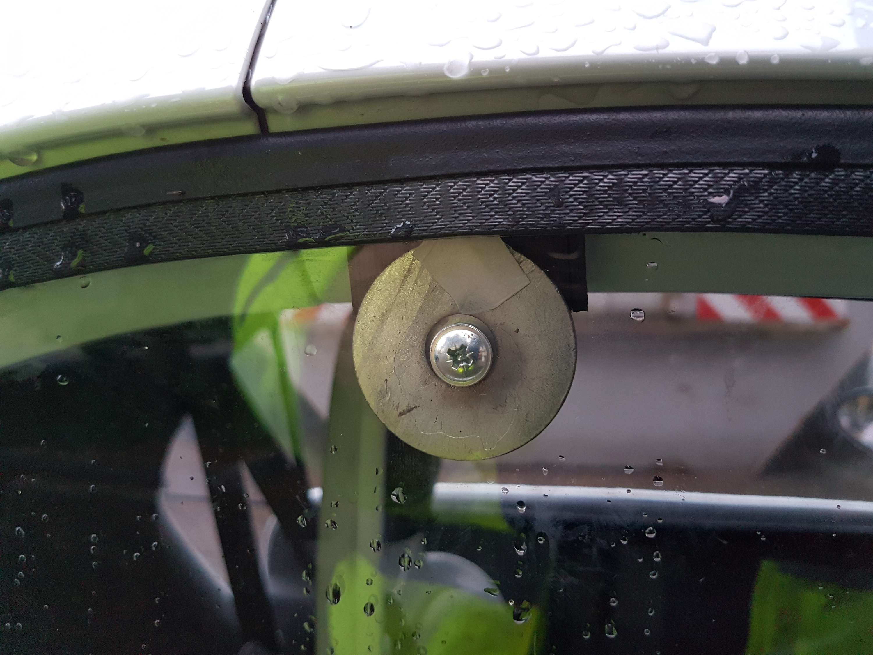 Nachdem die Fenster eh schon ein Loch hatten, hab ich da gleich meine Beilagscheibe angeschraubt.