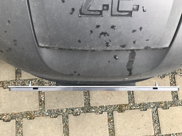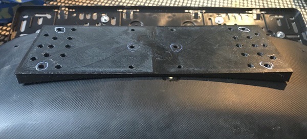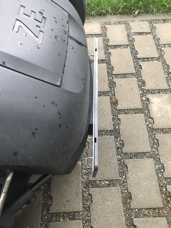 Gedruckt werden sollte in ABS oder einem ähnlich geeigneten Material. Für die Befestigung habe ich M5 Schrauben mit selbstsichernden Muttern verwenden, zur Verstärkung habe ich ein 3 mm dickes Alublech in der Breite des Nummernschildhalters dazwischen geschraubt.