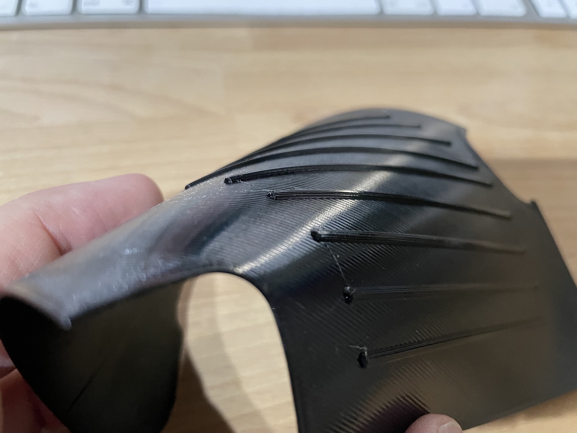 Der Druck benötigt extrem viele Wechsel des Filaments. Zumindest wenn man einen Drucker mit nur einer Düse hat, wie ich. Diese Wechsel sind leider noch extrem fehleranfällig und man muss den Drucker immer mal wieder „unterstützen“. Und das geht bei einer Druckzeit von rund 24 Stunden echt in die Zeit.