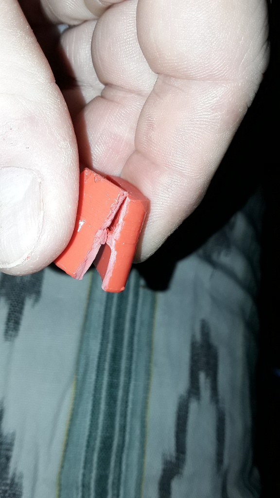 Das Zeug ist einfach zu weich für die dünnen Strukturen. Und imho auch für den Einsatzbereich an der Türfalle. Fühlt sich an wie ein billiges Ü-Ei-spielzeug, und ist null kerbfest.