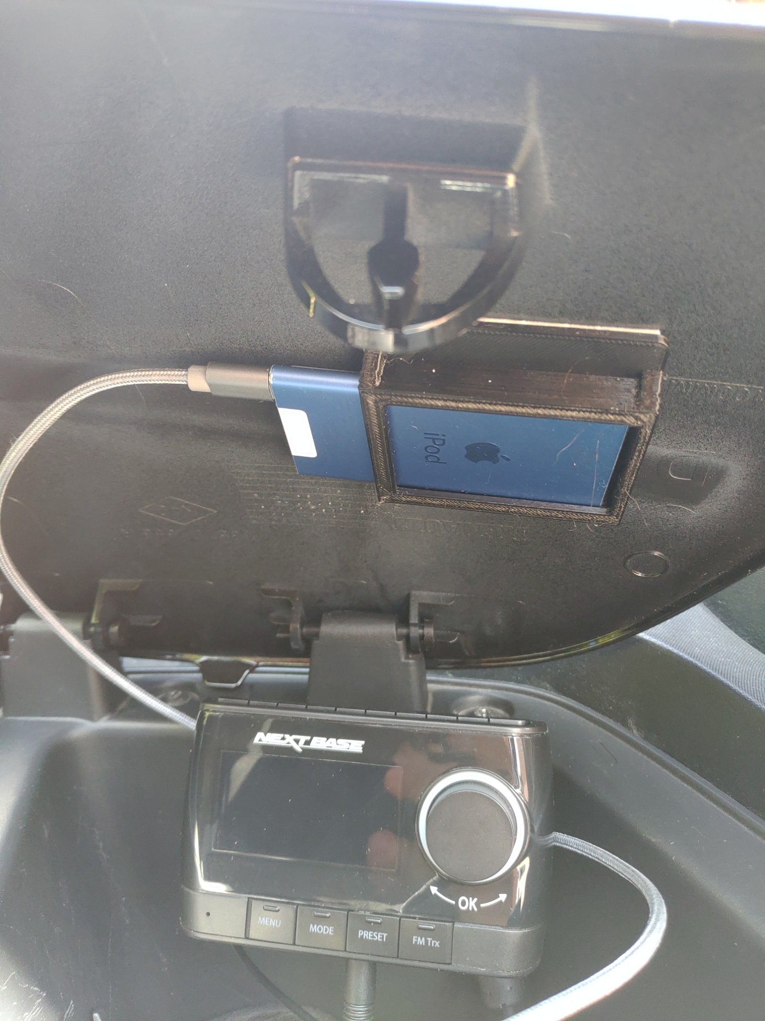Da mein iPod Nano immer in den Tiefen des Handschuhfachs verschwunden ist habe ich eine simple kleine Halterung designed die einfach in den Deckel geklebt wird