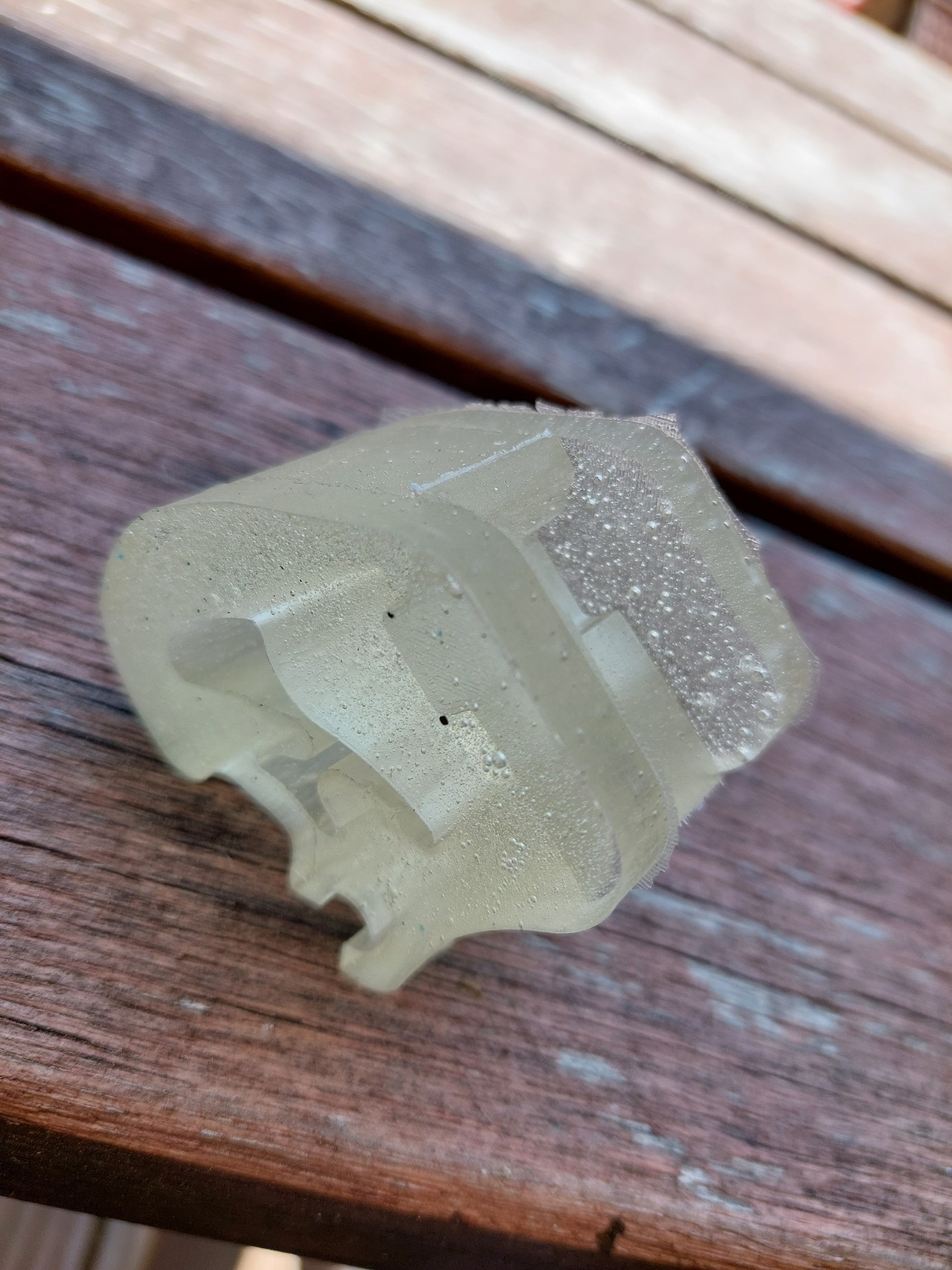 Ausformen ist bäh! Das will nicht so recht loslassen, trotz massig Trennmittel. 3D Layeroberfläche ist nunmal nicht wirklich glatt.