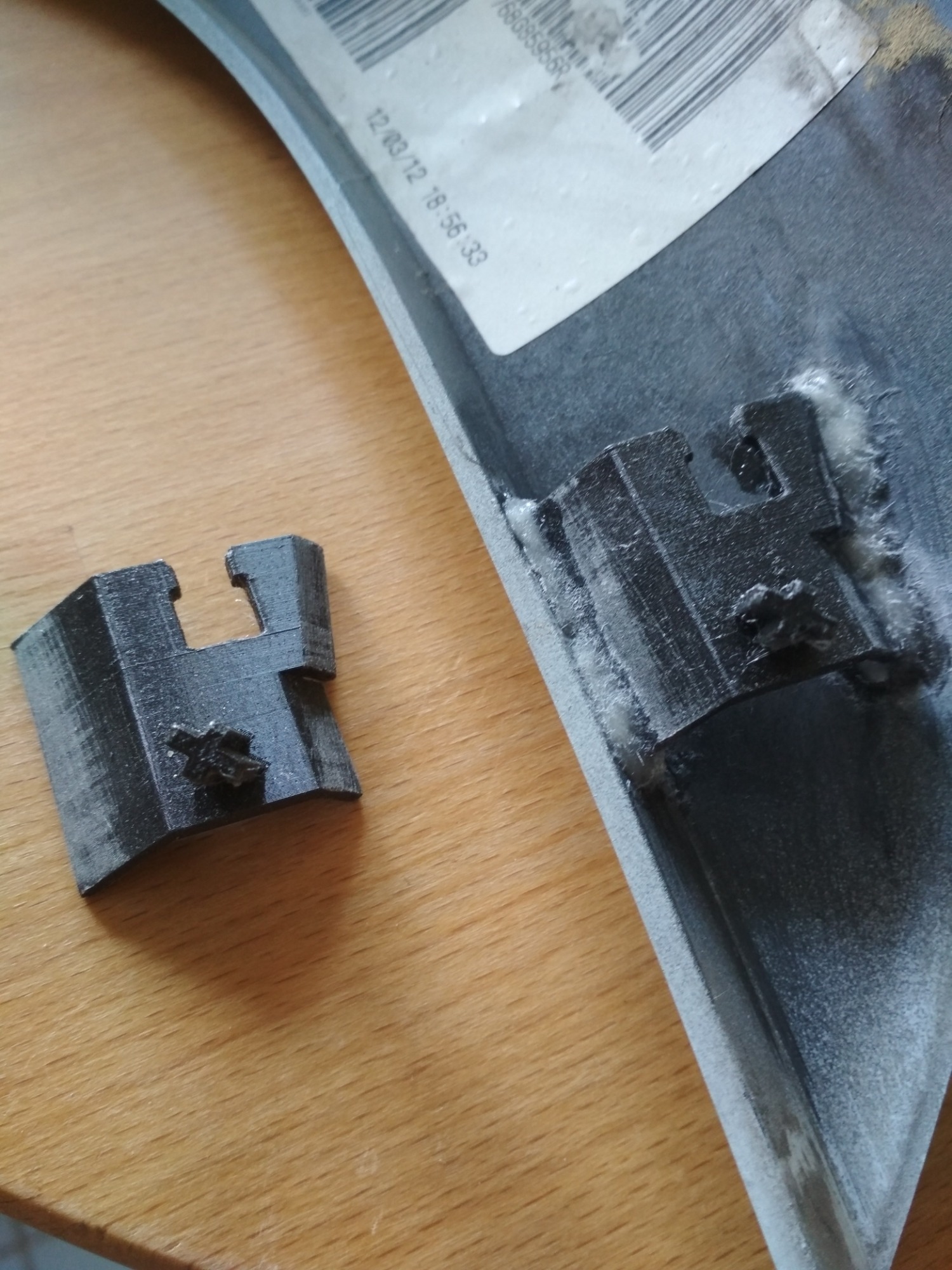 Ich habe mein Frontmaske repariert mit PETG gedruckte halterungen,( danke für das bereitstellen der Datei) diese habe ich mit PU Kleber befestigt! Muss sagen super Fest, gucken was der Winter sagt.