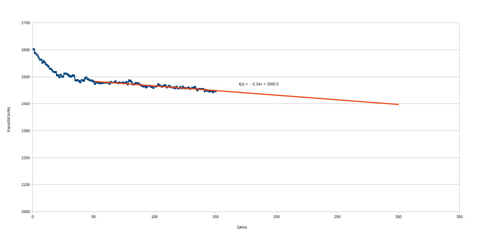 Es können 8,05 Wh entnommen werden(gemessen bei Zyklus 100).