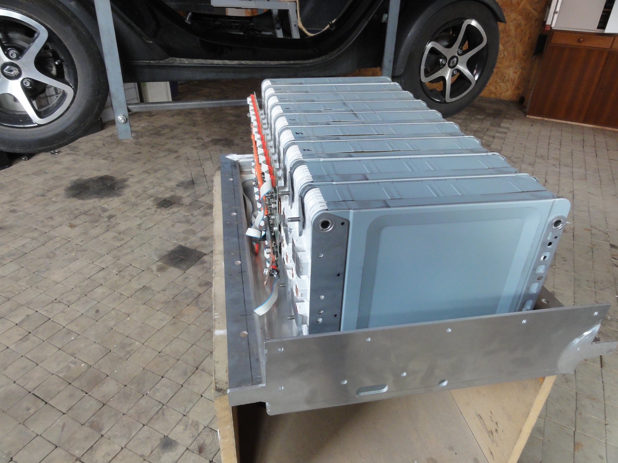 an den 8 Verschraubungen habe ich mir Versteifungen eingebaut, dadurch konnte ich ein dünneres Blech verwenden. Als ich ein 90 kg schweres Gewicht in die Wanne ohne Deckel und ohne Twizy gelegt habe, gab es keine Verformung an den Aufkantungen ich sehe statisch dafür keine Probleme. Wenn die Akku Box mit Deckel im Twizy verschraubt ist wird es ja noch stabiler.