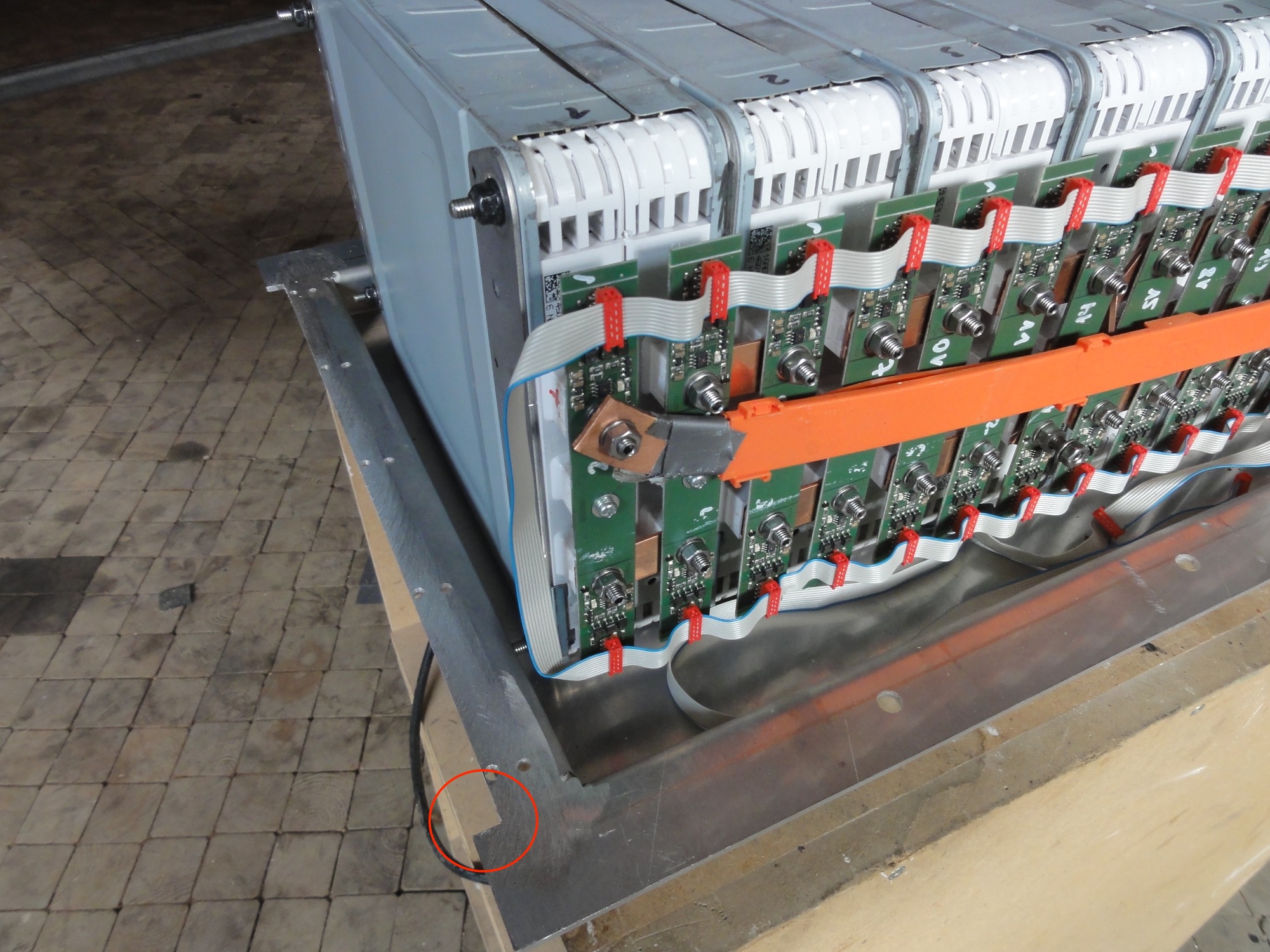 Die mittleren Anschlüsse sind zwar etwas schwächer ausgeführt, aber müssten eigentlich für den Makrozellenverbund ausreichen -- denke ich. Die darüber fließenden Ausgleichsströme können nur hoch werden wenn eine Einzelzelle komplett hinüber ist, und das merkt das BMS ja vorher. Evtl. könnte man noch ein besseres Layout finden wenn man die 2er-Module auftrennt.