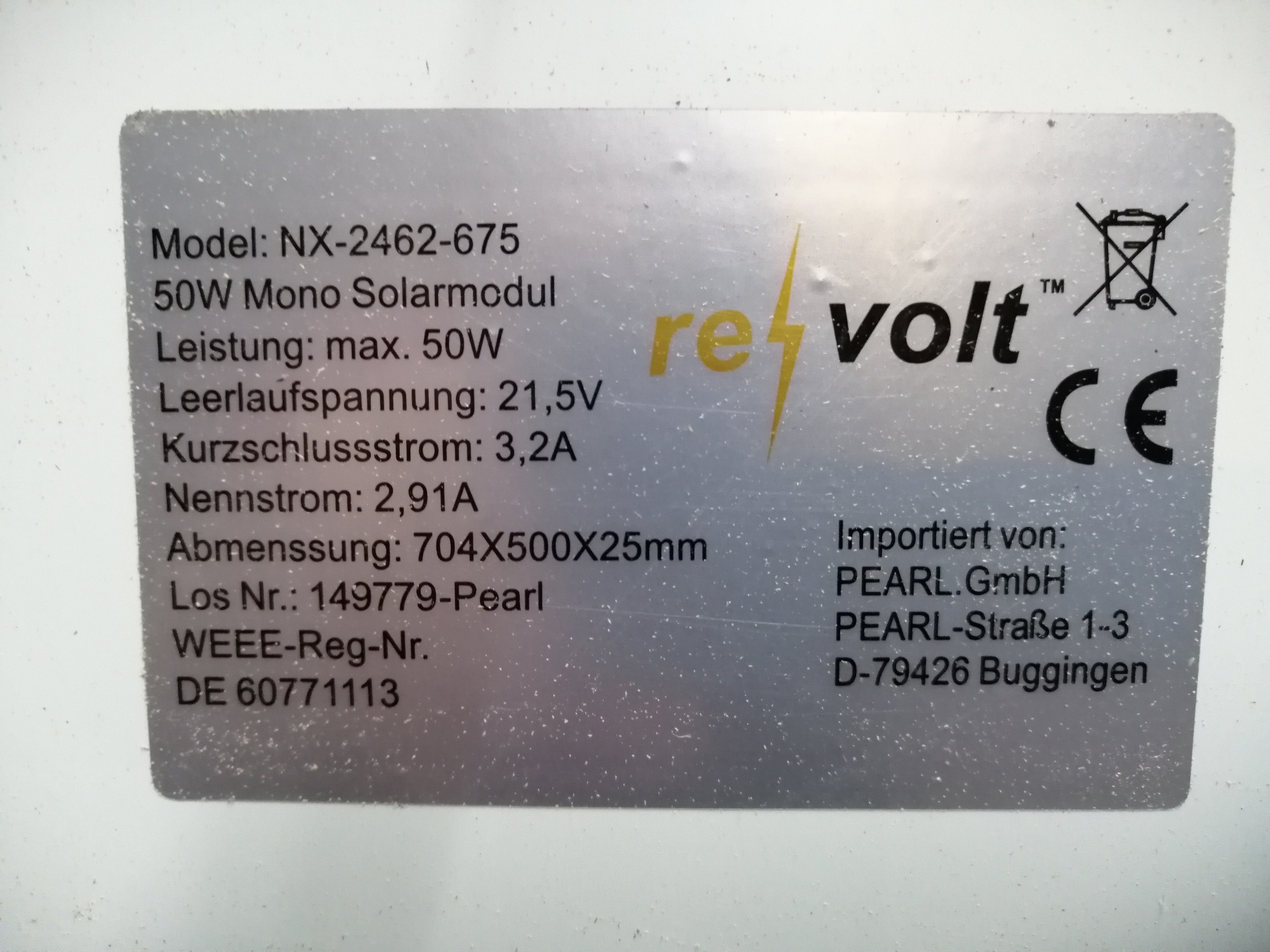Der Versuchsaufbau besteht aus einem 50x75cm cm großen Solarmoduls von Pearl.
