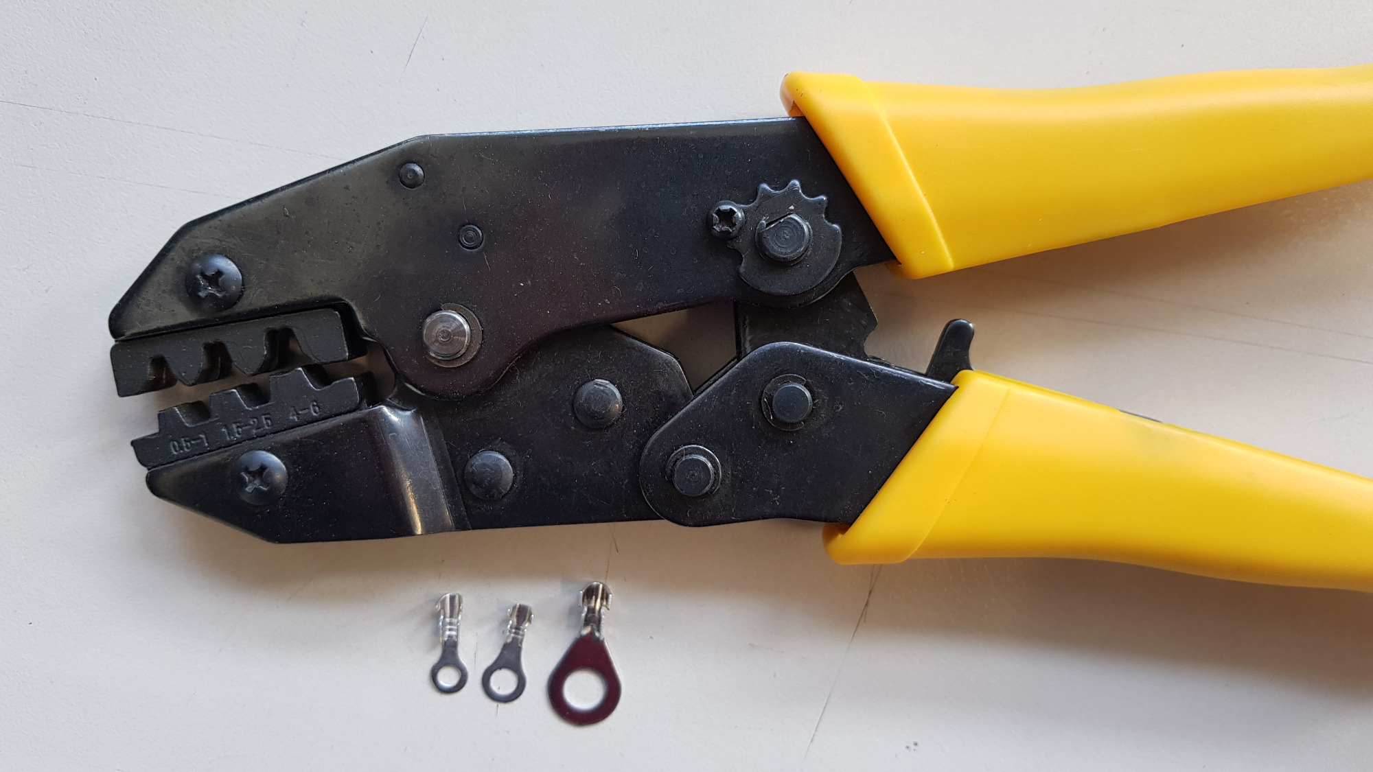 Kabel, Kabelschuhe und Crimpzange harmonieren zunächst nicht wirklich gut miteinander, aber nach ein paar Versuchen habe ich ein Crimp-Verfahren gefunden, welches ein für mich befriedigendes Ergebnis liefert.