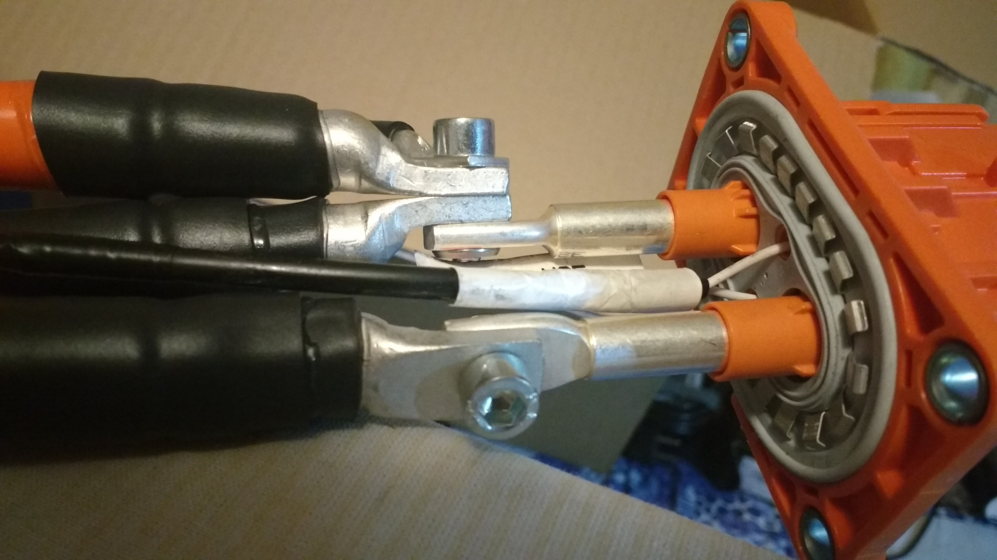 Die Laderleitungen sind 10², leider sind die kurzen originalen Leiter der Laderbuchse nur 4², da gibts keine gescheiten Pressverbinder... also entweder Löten (Bäh!) oder eben Zusammenschrauben.
