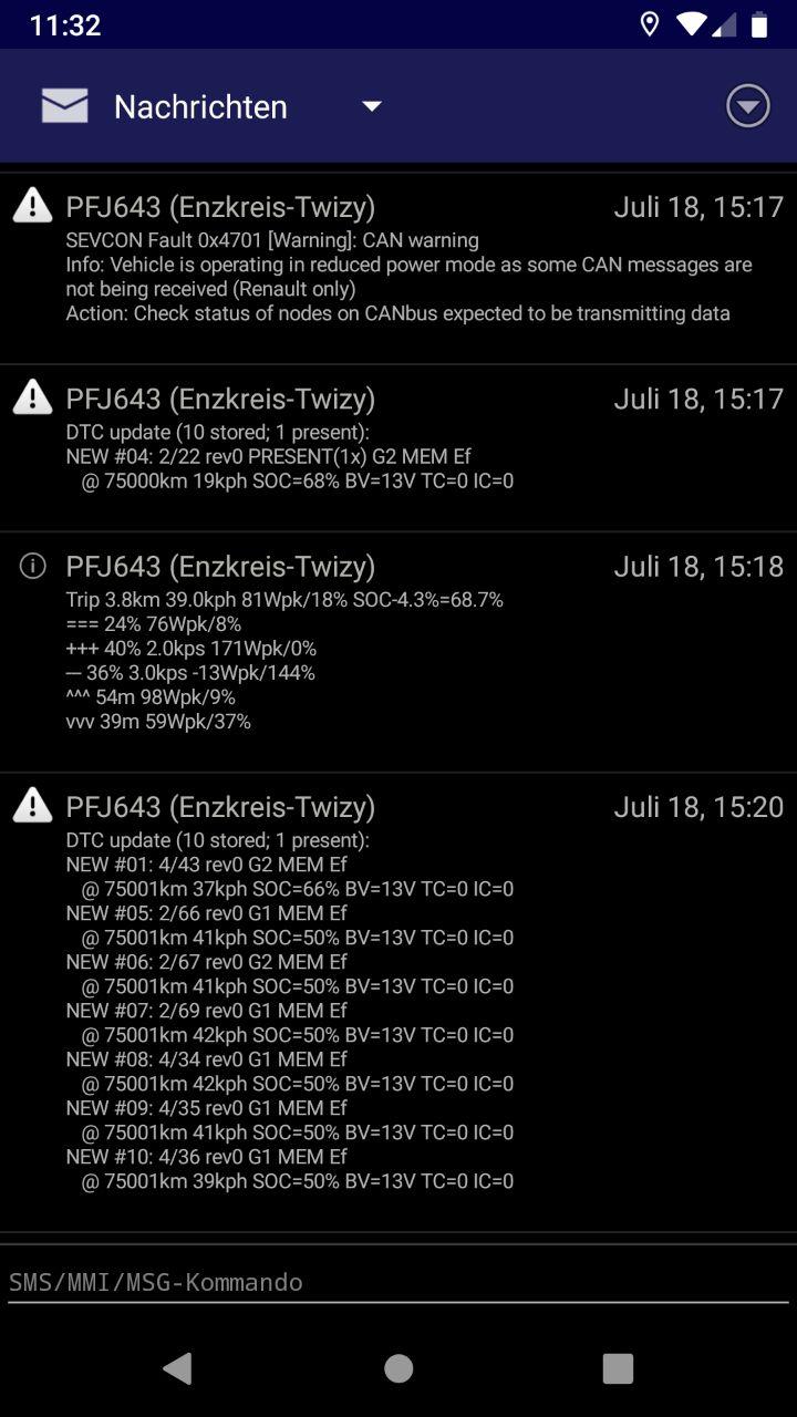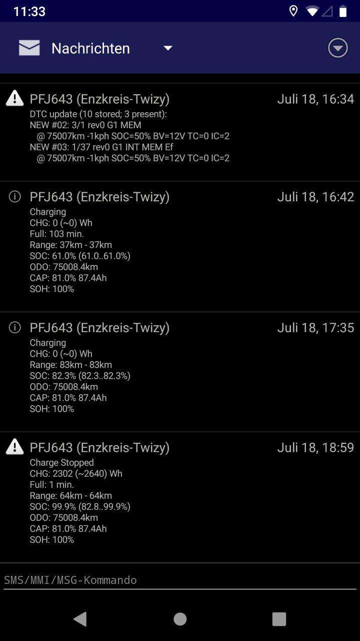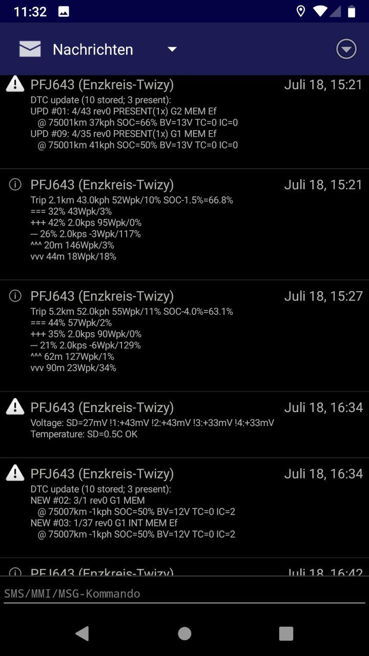 Hier noch die Nachrichten vom OVMS aus dem entsprechenden Zeitraum.