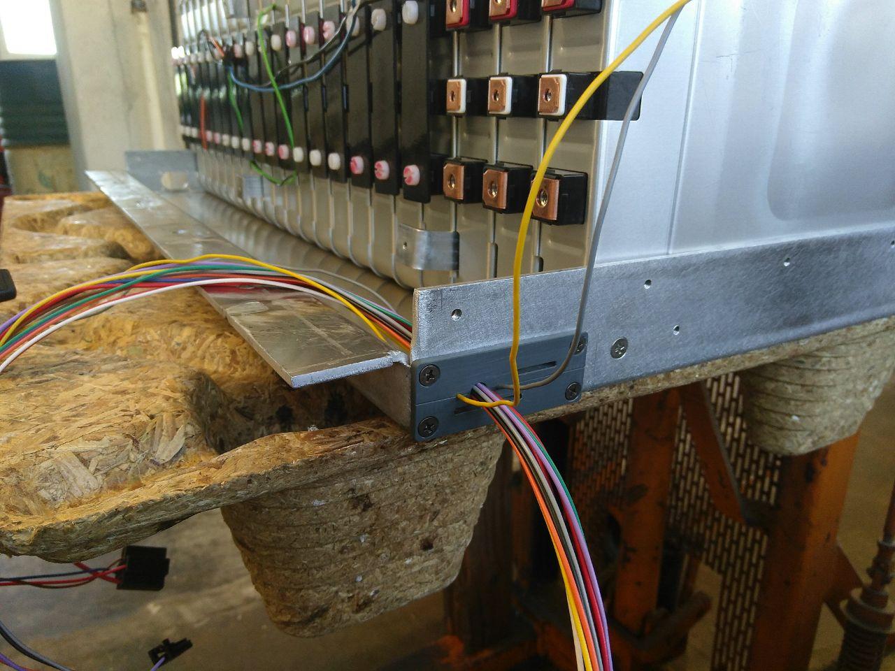6. Dann die Zellverbindungen mit Balancerleitungen montiert und immer sofort die Zellverbinderabdeckungen angebracht, um das Risiko von Kurzschlüssen zu minimieren!