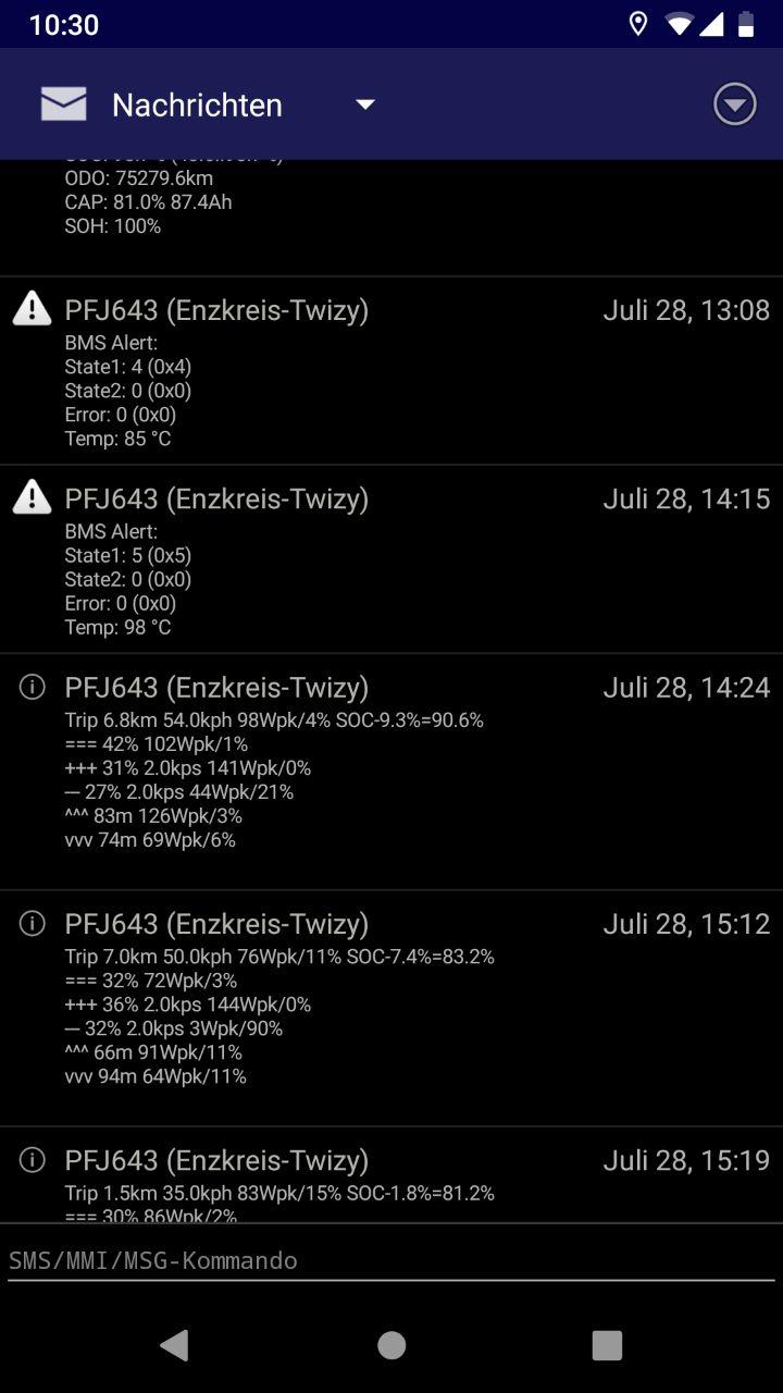 In den OVMS App kommen gelegentlich derartige Nachrichten.