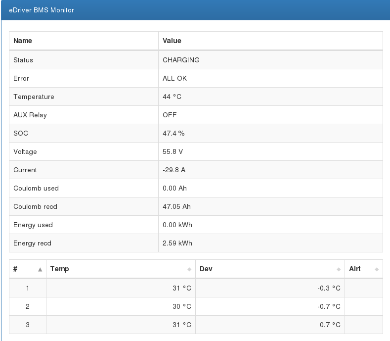 Momentaner Stand (18:00 Uhr): SOC 65%, BMS Temperatur 70°C
