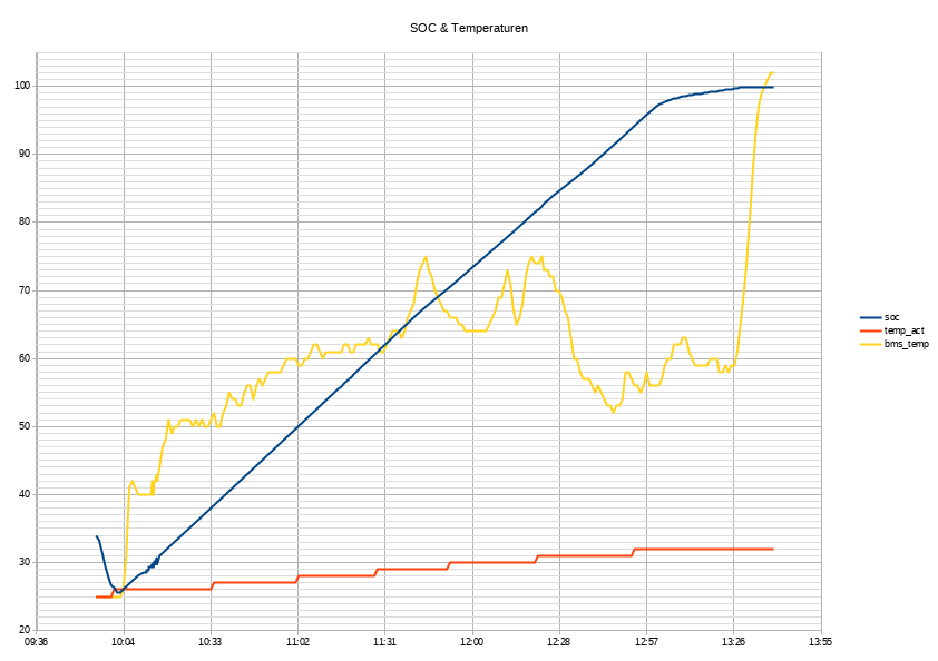 Um ~13:30 Uhr wurde 99,9 % SOC erreicht.