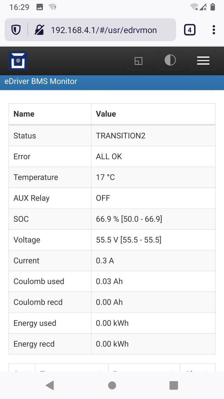 Ich habe 2 Screenshots vom EDriver BMS Monitor gemacht: