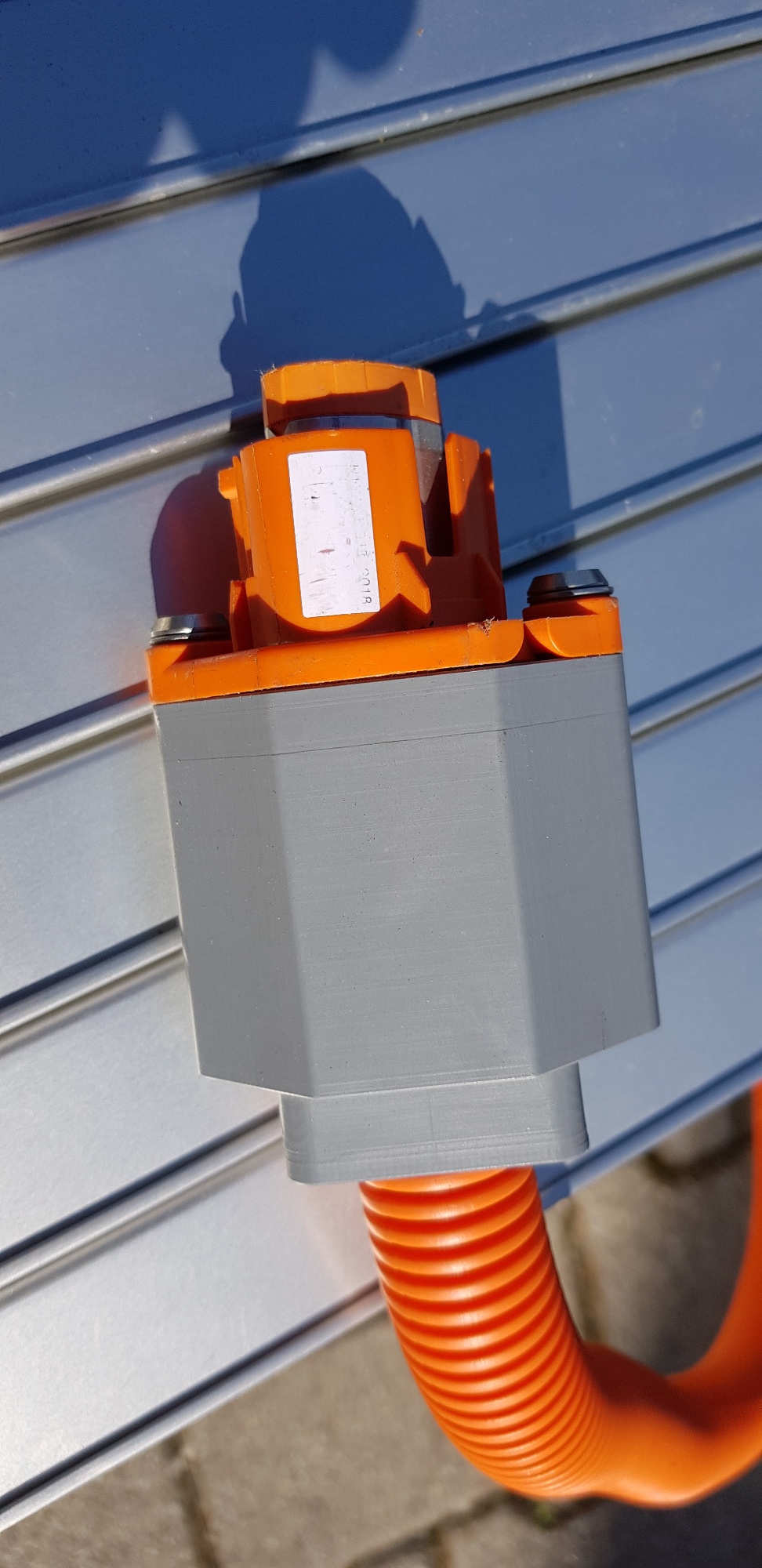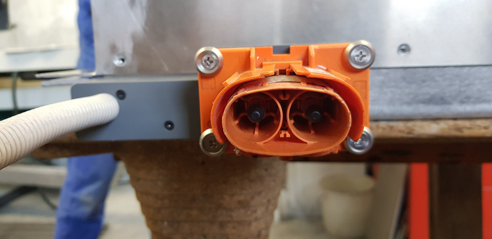 Den Ladegeräteanschluss habe ich auch nochmal komplett überarbeitet und die im Freien verlaufenden Kabel zusätzlich durch ein Wellrohr geführt: