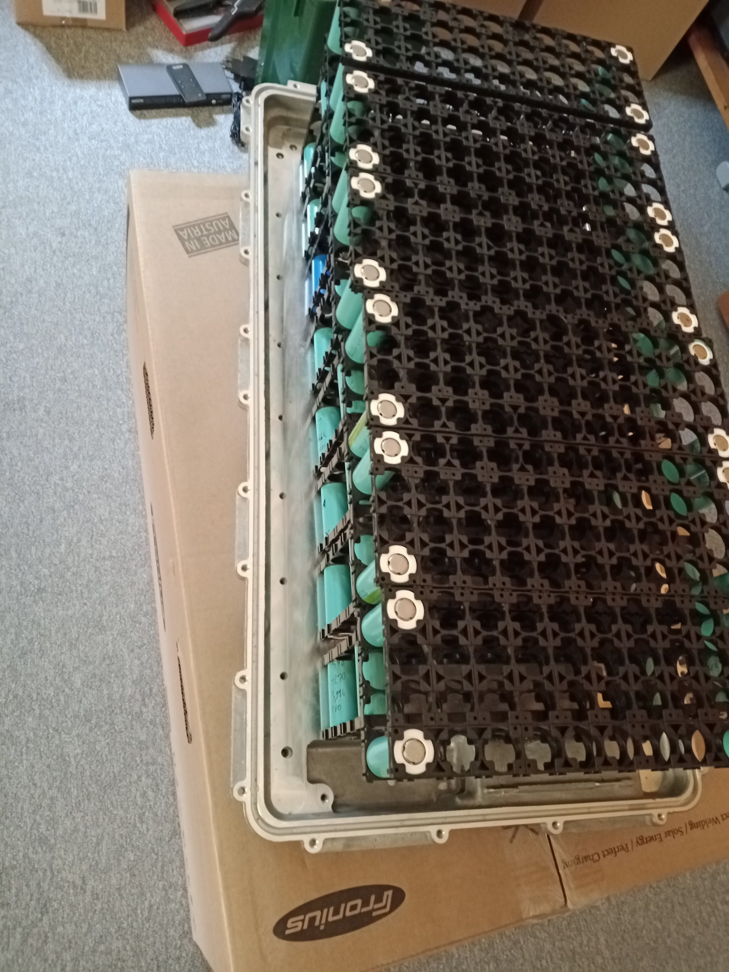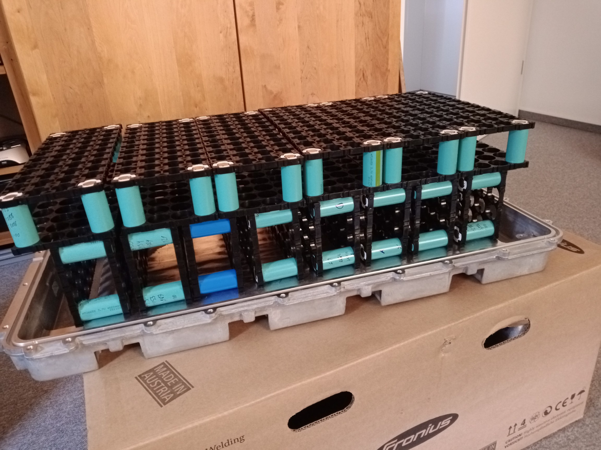 Die Zellen sind nun alle getestet, glücklicherweise konnte ich die insgesamt 11 Auffälligen aussortieren ohne das die notwendige Gesamtzahl unterschritten wurde. Waren ja ursprünglich 620 Stück, von denen ich 602 verbaue. Am Schrott werd ich ein paar Lötstrategien testen..