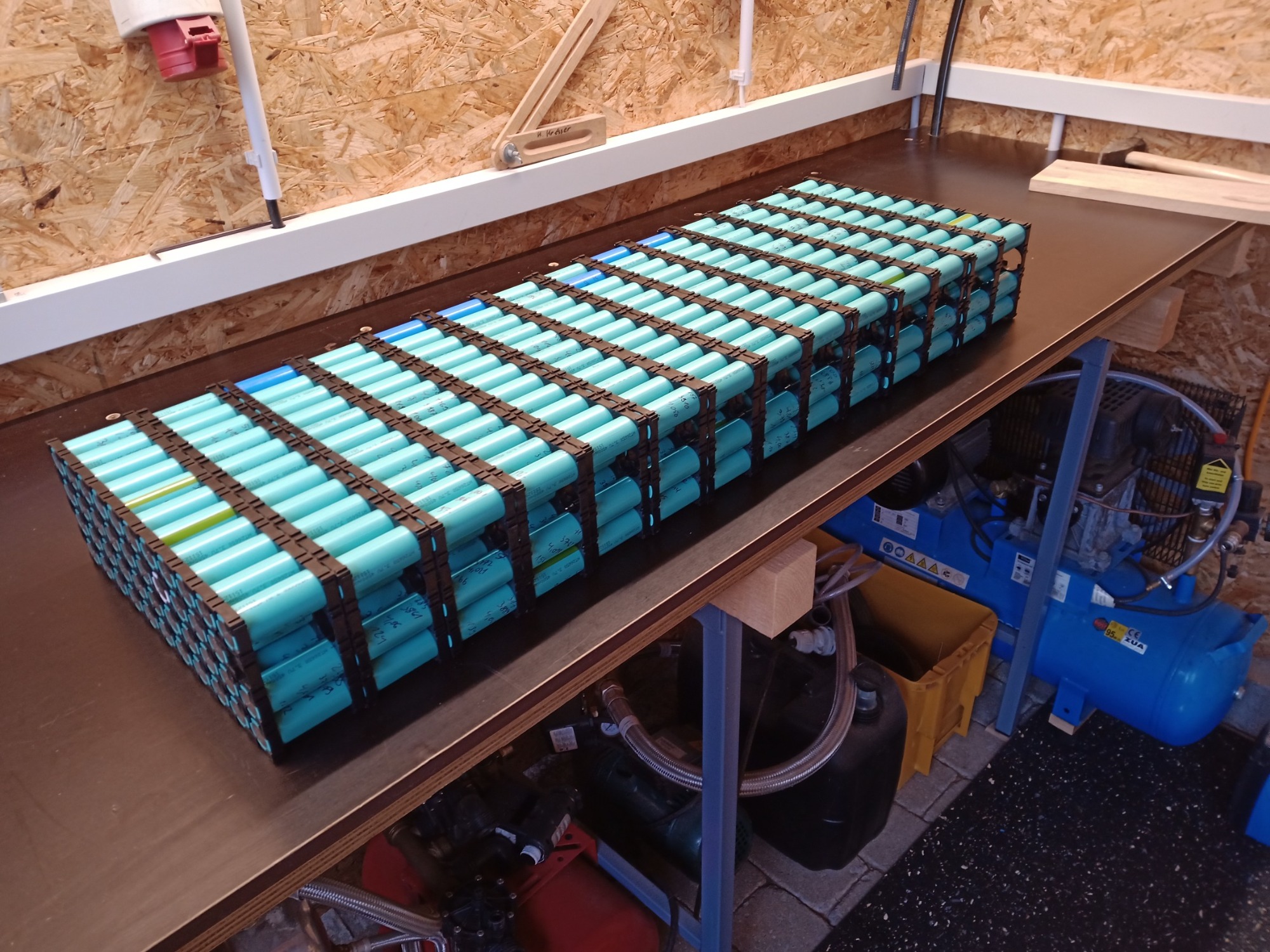 43P liegt vor allem daran das von den 320 Walther-Doppelakkus einige komplett DOA waren, und ich beim Testen noch ein paar der Einzelzellen verworfen habe. Es sind jetzt noch 9 Stück übrig, und irgendwelche dazuzukaufen halte ich für keine gute Idee. Mag für einen relativ ungestressten Powerwallakku egal sein, ich wollts nicht.