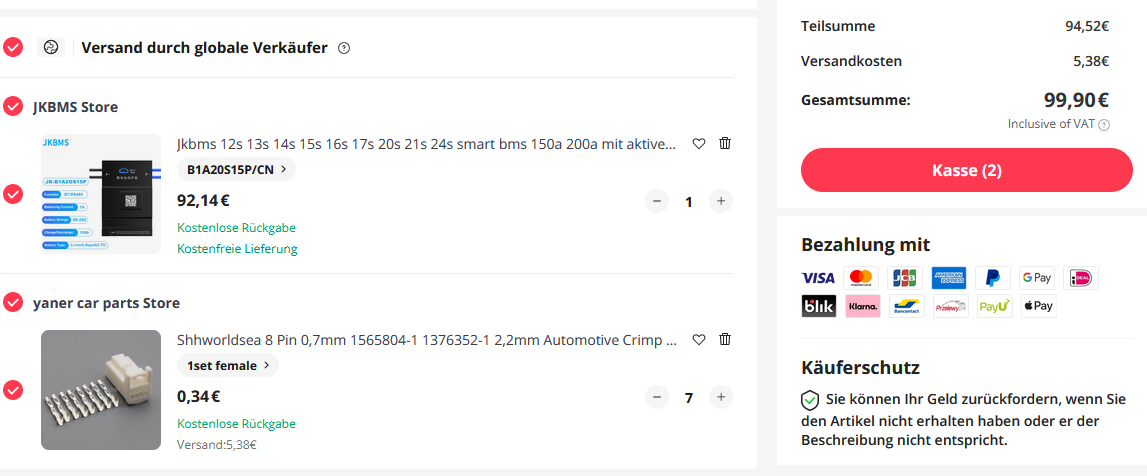 Das TwizyBMS hat Steckerverbindungen zu jeder Zelle, JK-BMS kommt mit offenen Kabelenden. Beides parallel zu betreiben verbietet sich.