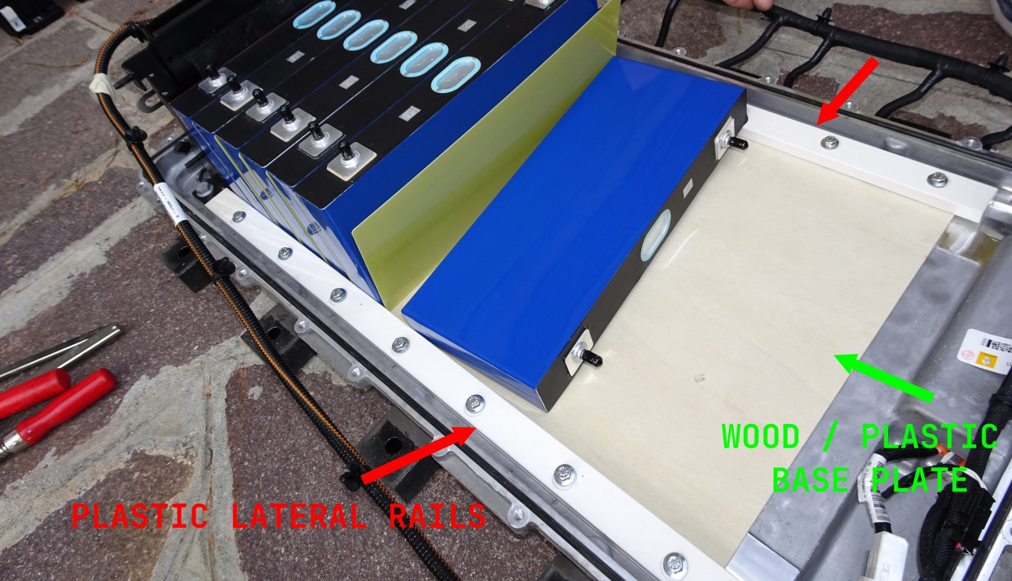 I also assume that Delv... built the side fixing rails out of plastic or wood. Because it logically goes without saying that it makes no sense to put epoxy insulation panels between the cells, but then mount an uninsulated metal rail on the side of the cells