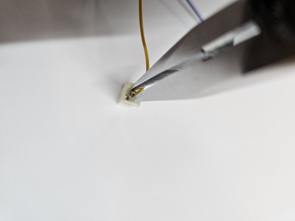 Würde beim nächsten mal Kabelringschuhe dran löten und kleine Löcher bohren und mit selbstschneidenden M3 die Schuhe befestigen.