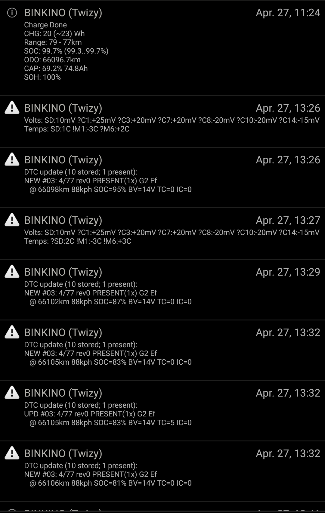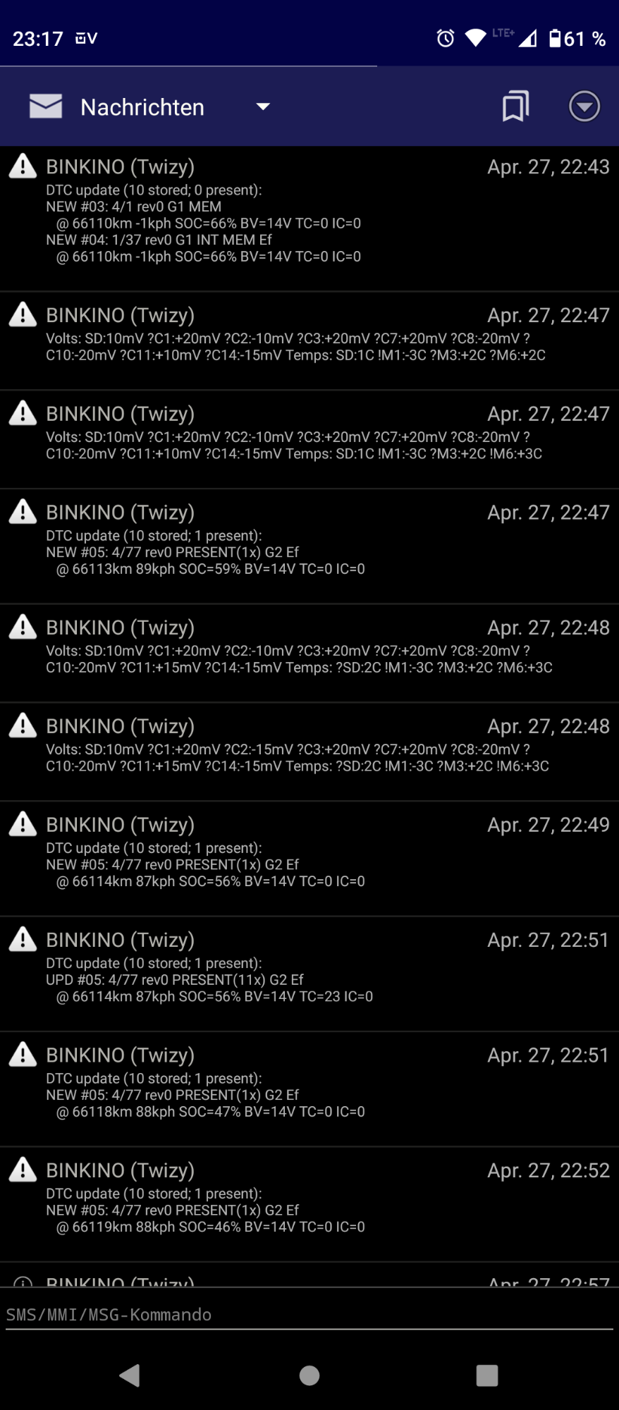 Wieder die Meldungen auf der Fahrt, bei vollem Akku jetzt.