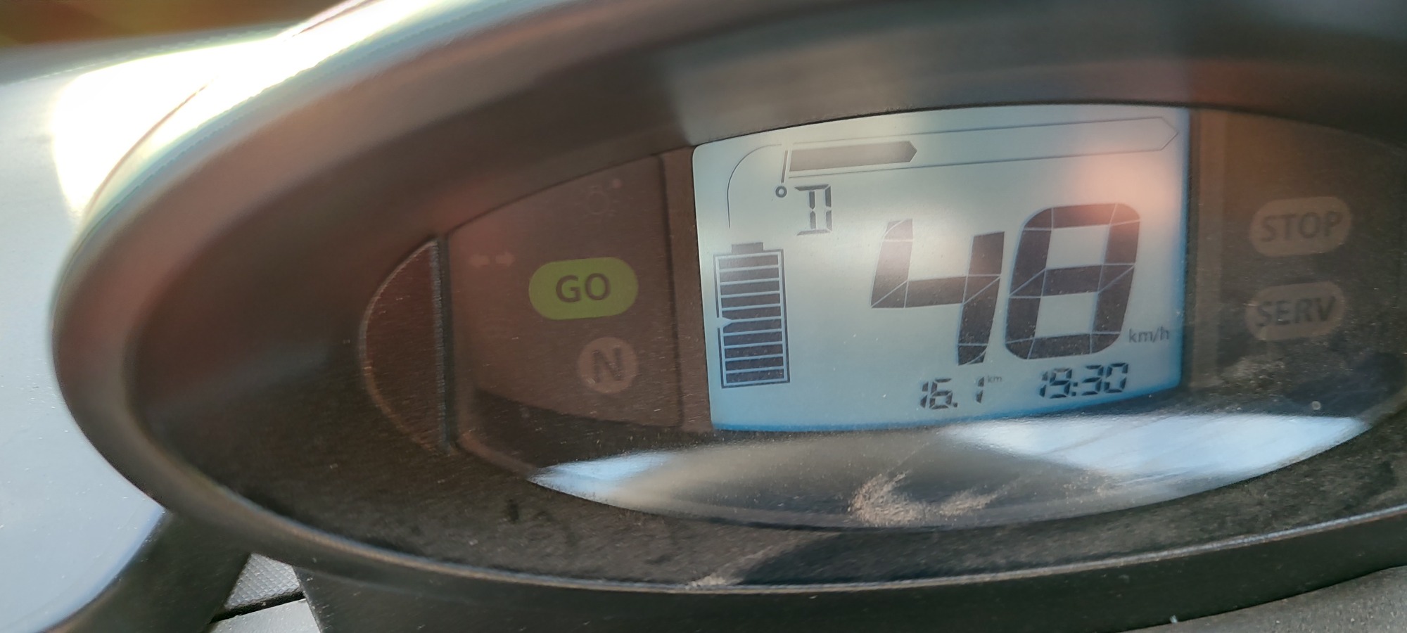 nach weiteren 500m die SERV dauerhaft gesetzt. Ein Kilometer weiter, 300m vor dem heimischen Stall hat er die Steigung zum TCC bei einer Restreichweitenanzeige von 4km