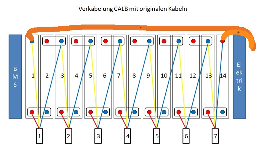 Wie lang müssen die beiden 50mm² „Hochvoltkabel” ungefähr sein? (Orange im Bild)
