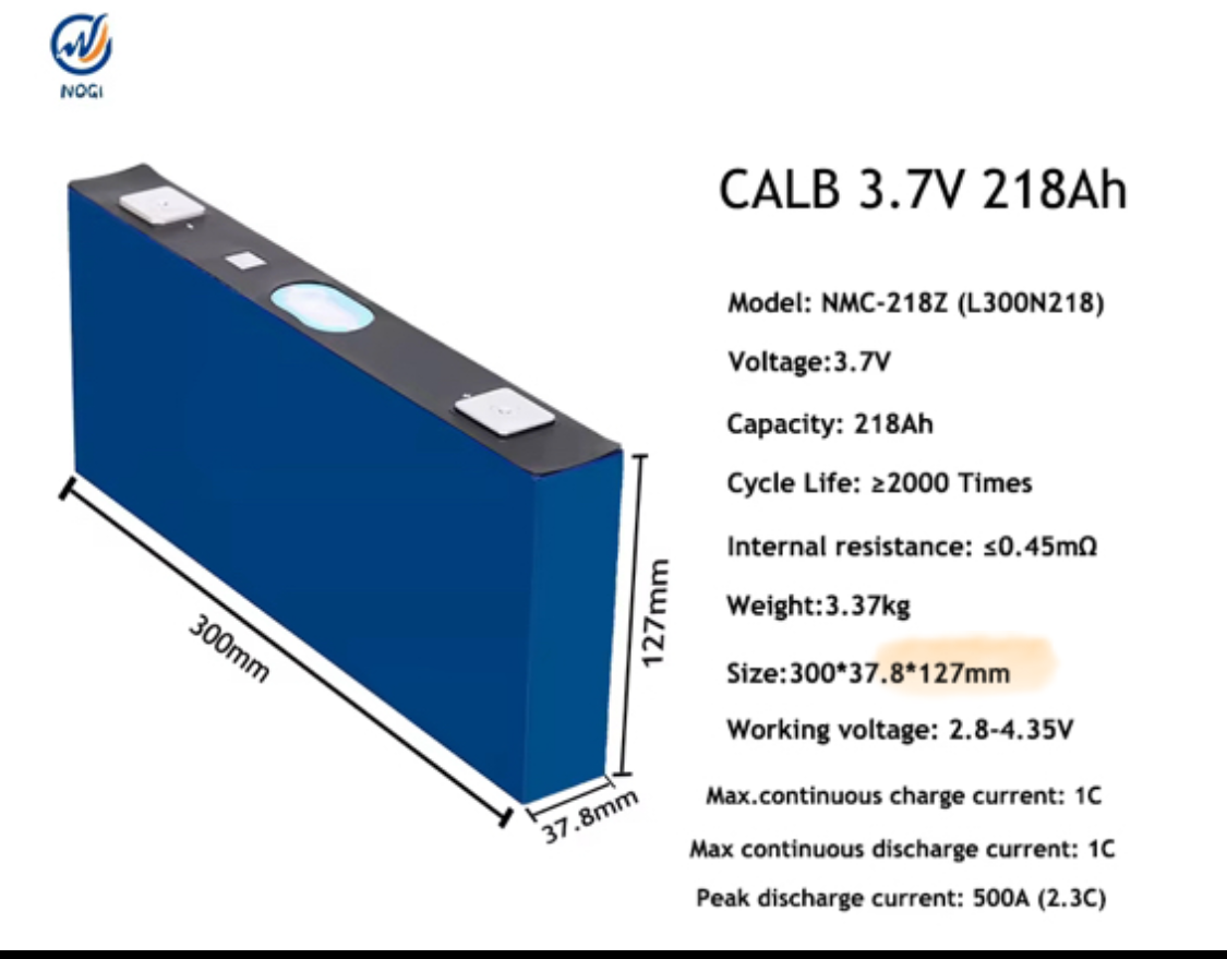 EXW price for CALB 3.7V 218Ah is US$58.80/PC