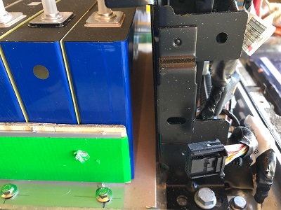 Dann eine obere Zellen-Arretierung anbringen, und zum Schluß die Hochstromkabel.