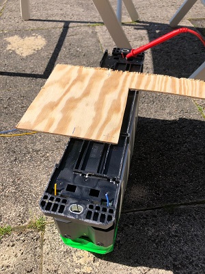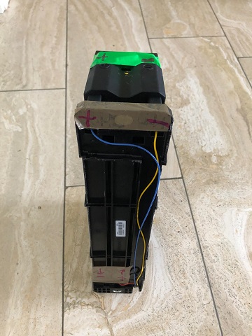 Von den alten Zellen habe ich den Stecker ausgeklipst, und die Kabel abgeknipst, da ich das ja alles wieder verwende. Nochmal schnell nachgeprüft welche Farbe welche Polarität hat... sicher ist sicher. (Das Holzbrett ist hier irrelevant)