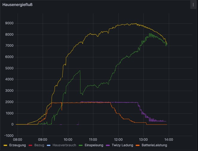- orange: Ladung der ex. TwizyBatterie, folgt der Erzeugung, abzgl. Hausverbrauch (nicht dargestellt)