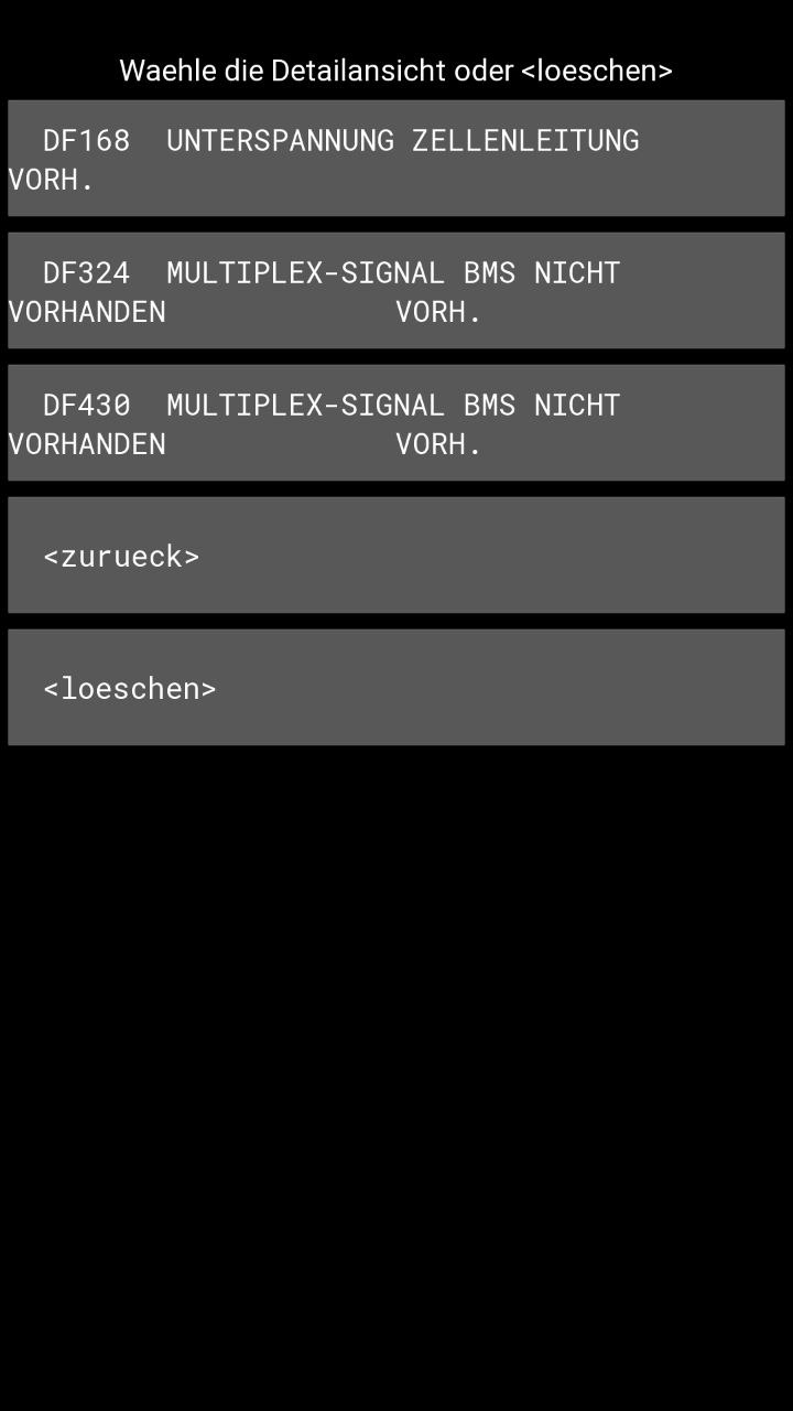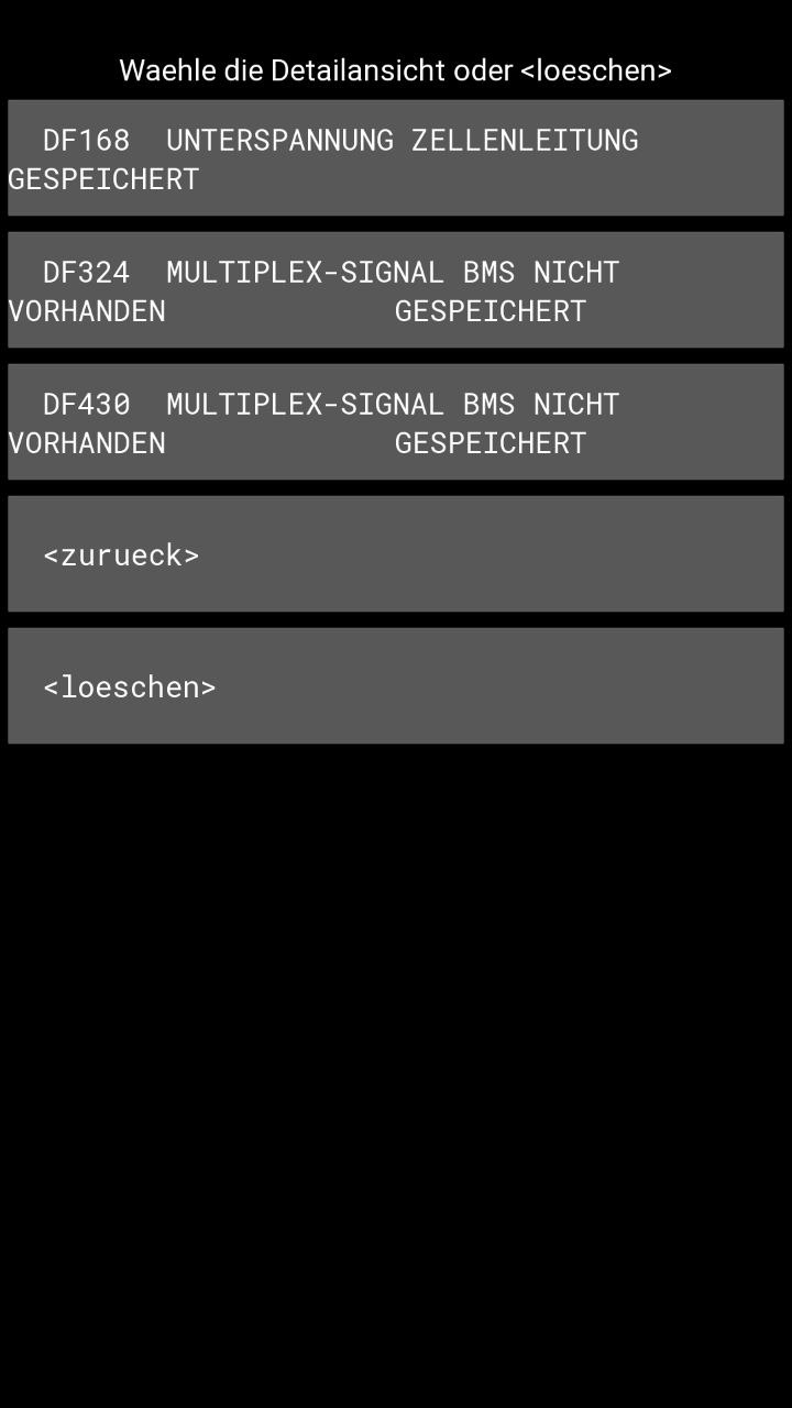 So sieht der Fehlerspeicher meines Cargo aktuell aus, an dem ich den Akku zum Testen angeschlossen hatte: