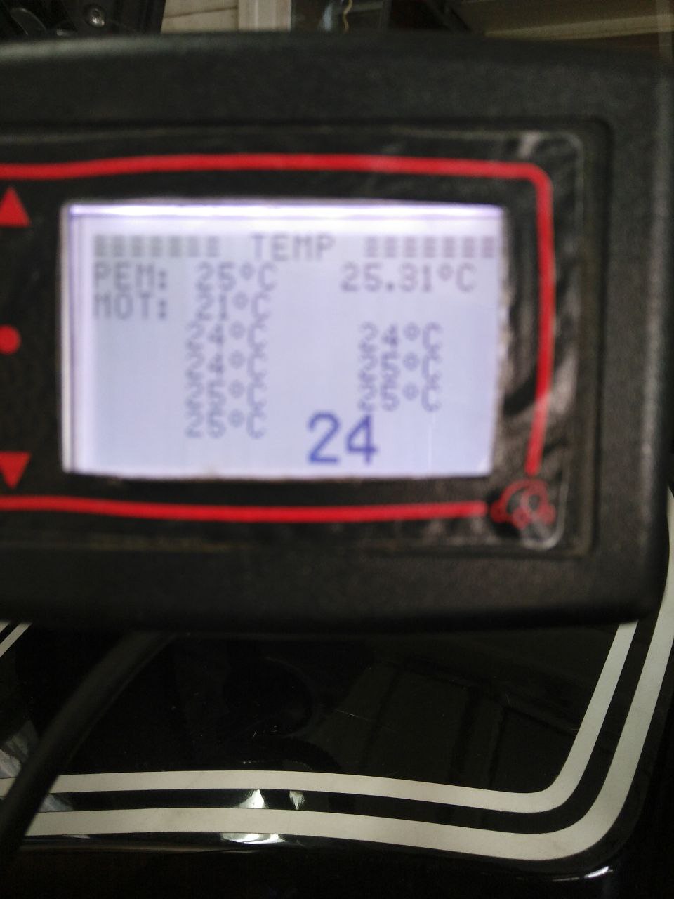 Der Akku hat eine Spannung von ~53,9 V (durch Multimeter bestätigt), alle NTC zeigen plausible Temperaturen an, der Twizy konnte auf "GO" geschaltet werden und wäre, wenn er nicht aufgebockt gewesen wäre, unter Garantie auch wieder nur mit reduzierter Leistung gefahren.