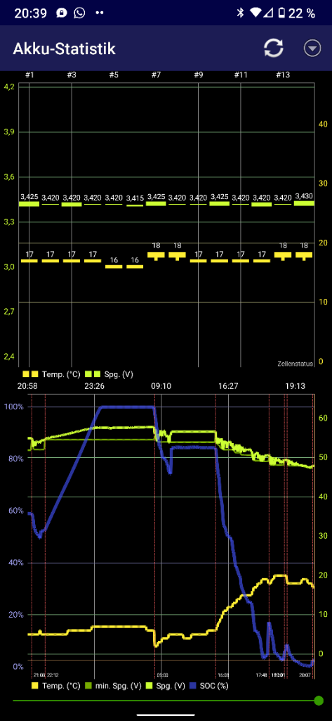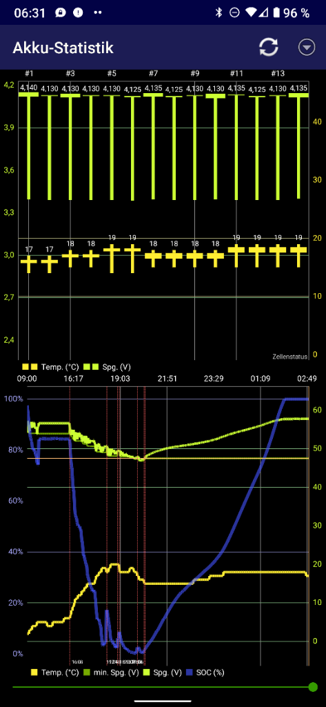 xrt.b.energy.full 4.3kWhsind noch nicht dem CATL angepasst - das BMS hat auch noch nicht auf breiter Front alle Zellen auf 4,14 V ausbalanciert - die liegen grade bei