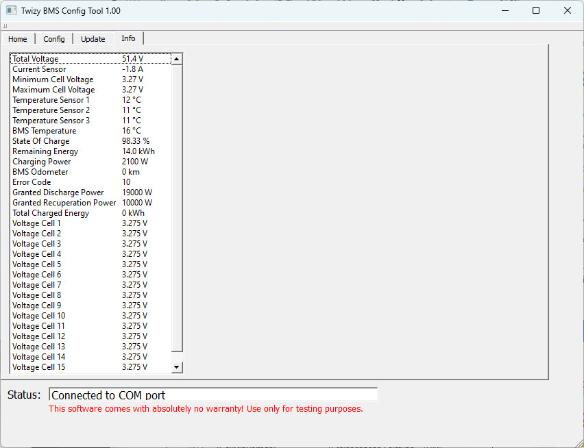 Ich denke nicht, sonst funktioniert Alles, Laden, die Display-Anzeige, die Relais schalten auch die Spannung. Könnte ja auch ein Problem am Fahrzeug sein, wirklich getestet habe ich dies bisher nicht. Wurde ohne Batterie gebraucht gekauft. Hat jedoch nach Angabe des Verkäufers bis zum Akkuausbau durch Renault problemlos funktioniert.Berthold schrieb: Ich habe keine Erfahrung mit den Edriver BMS . in einem Bild sehe ich das der Status des BMS auf „com port“ steht.