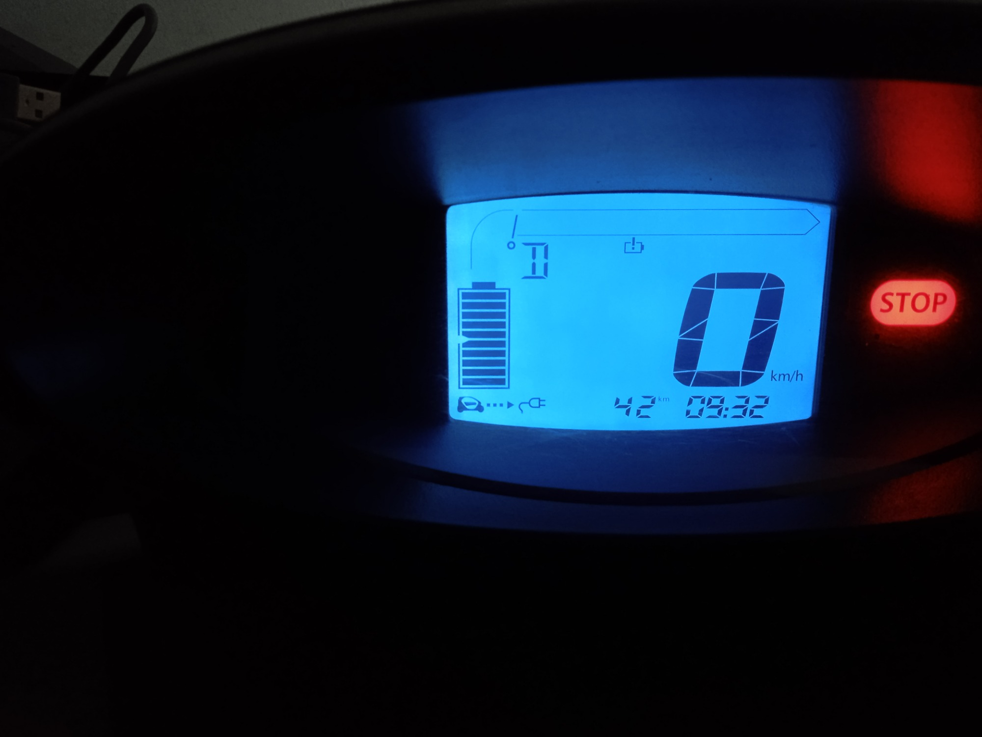 Im Twizy-Display wird angezeigt das der Akku voll geladen ist.