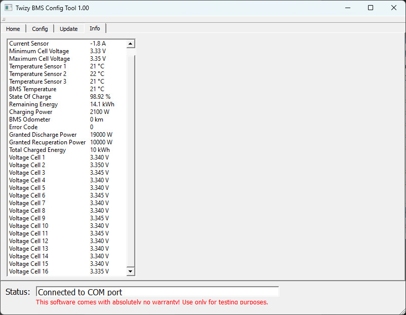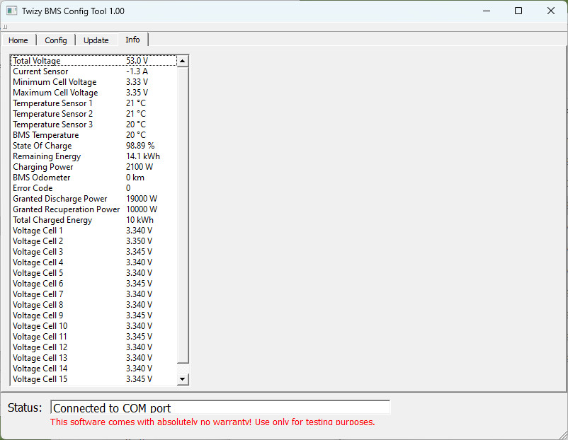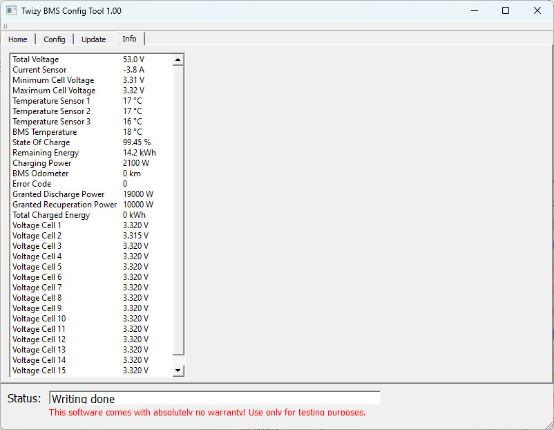 Goldbacher schrieb: Gab es für das Edriver-BMS ein Firmware-Update? Stimmen alle eingestellten Werte? Jetzt bleibt wohl erstmal nur das Warten auf den OBDII-Dongle.