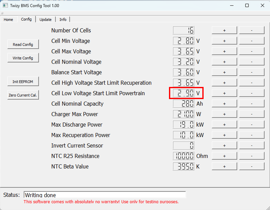 Ein Problem hatte ich noch, das beim Beschleunigung der Twizy auf Batteriestörung ging, mit dem OVMS konnte ich zum Glück die Daten analysieren und das Problem lösen, dies lag an der minimalen Zellspannung des Antriebstrangs: