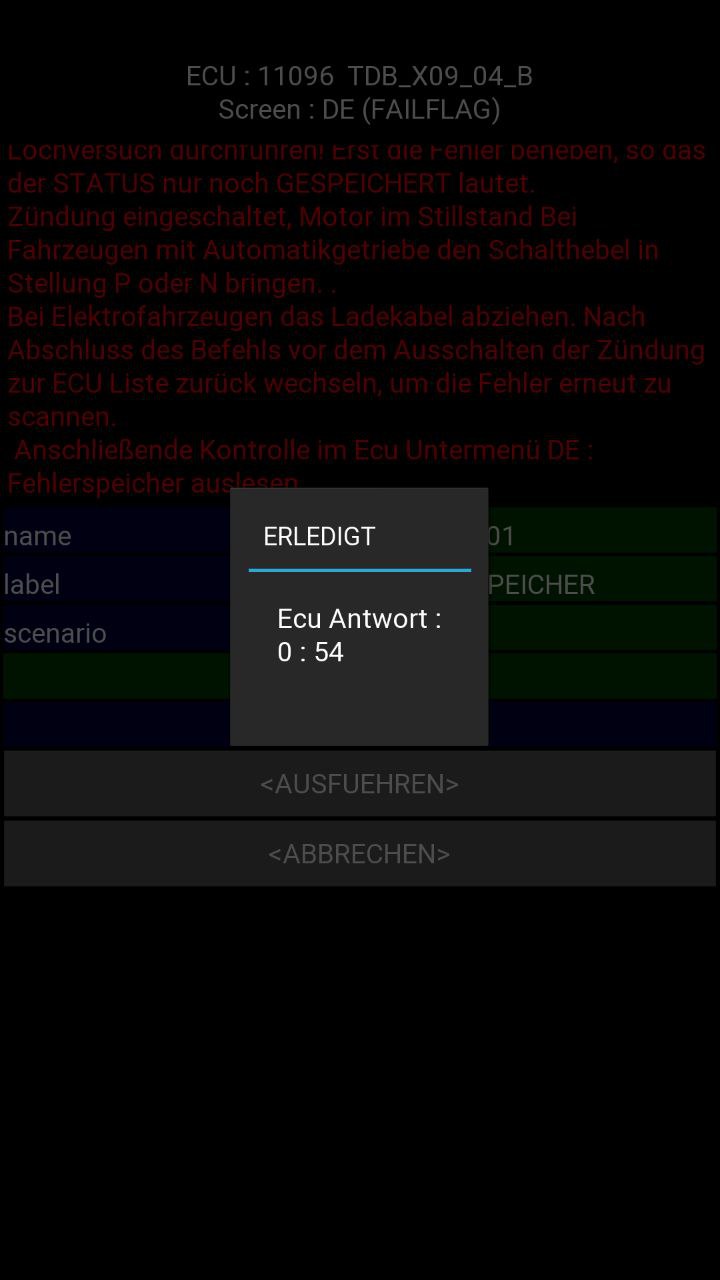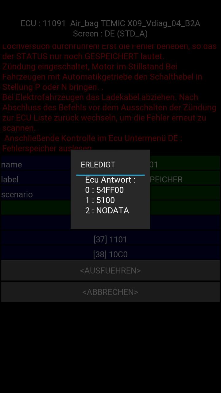 Keine Ahnung was uns das sagen will bzw. soll, aber nach ausführen von "Rescan errors" war das AIRBAG/GURTSTR. ECU tatsächlich auch numerisch wieder fehlerfrei, also "0".