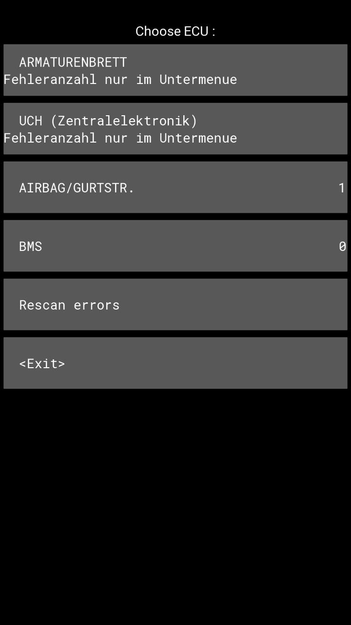Führt man den Fahrzeug-Scan beim Start der App auf während der Twizy noch abgeschaltet ist, dann werden nur 4 ECUs gefunden.