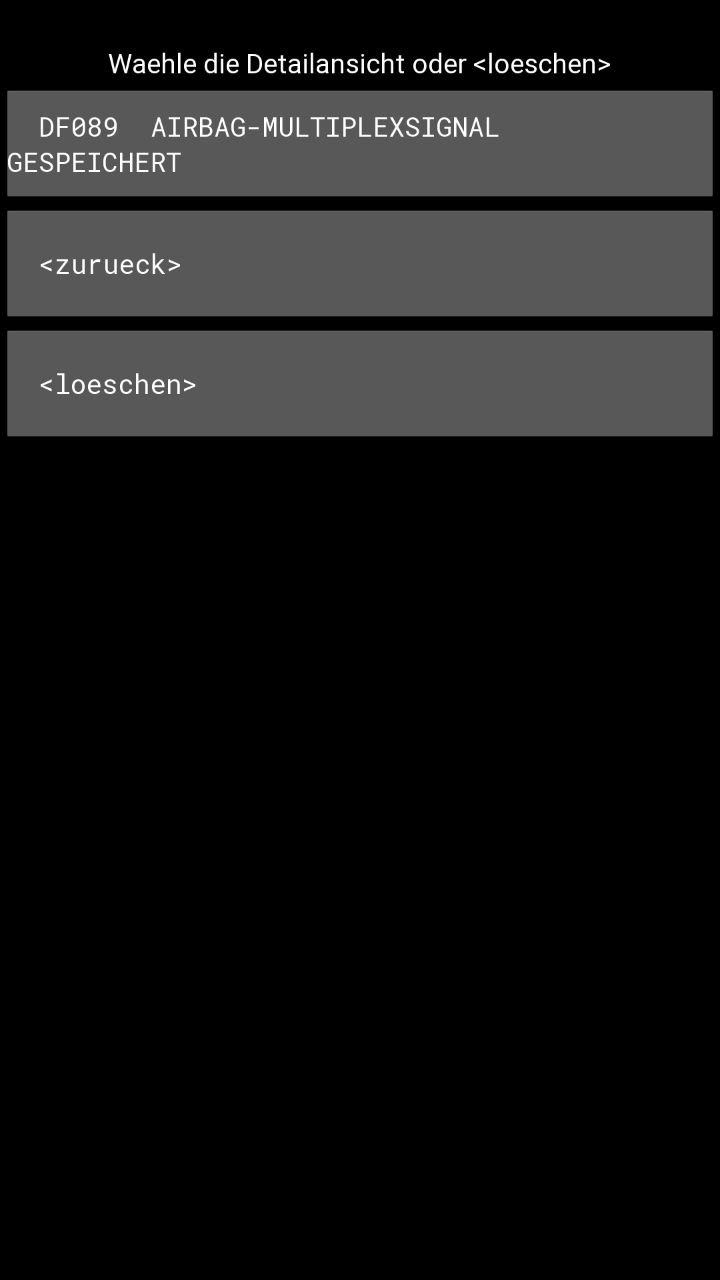 Obwohl es mir eigentlich sinnfrei erscheint etwas zu löschen, was gar nicht angezeigt wird, habe ich dann trotzdem im AIRBAG/GURTSTR. Untermenü den Löschbefehl ausgeführt.