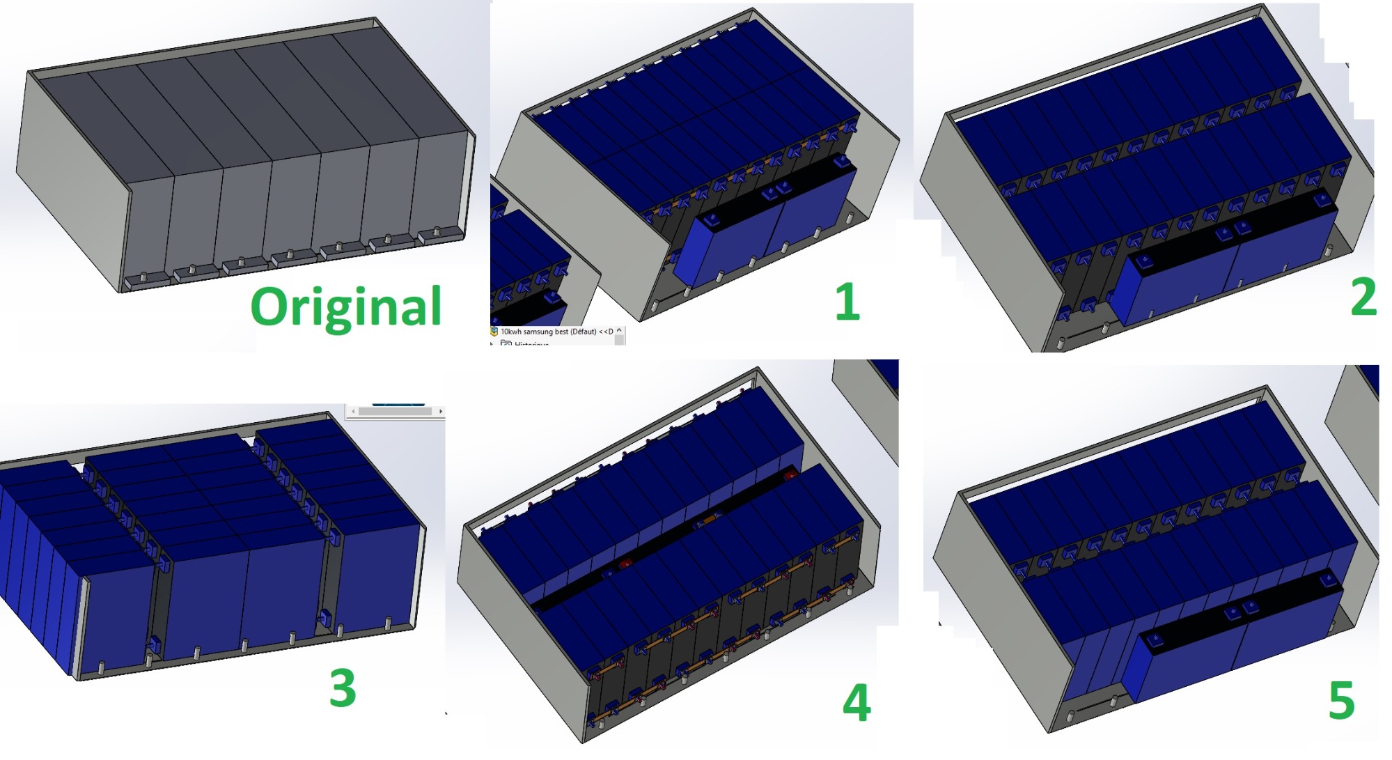 Ich habe über verschiedene Konfigurationen nachgedacht. Da ich die Batterie nicht zerlegt hatte, orientierte ich mich an den Originalmaßen der Batterie, die ich glücklicherweise im Internet finden konnte.: