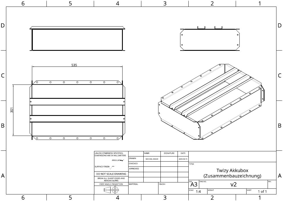Und könnte mir jemand die genauen Abmessungen schreiben, welche die Seiten und Boden Isolationsplatten haben müsste, damit sie in die finale Version der Blech Akkubox passen.