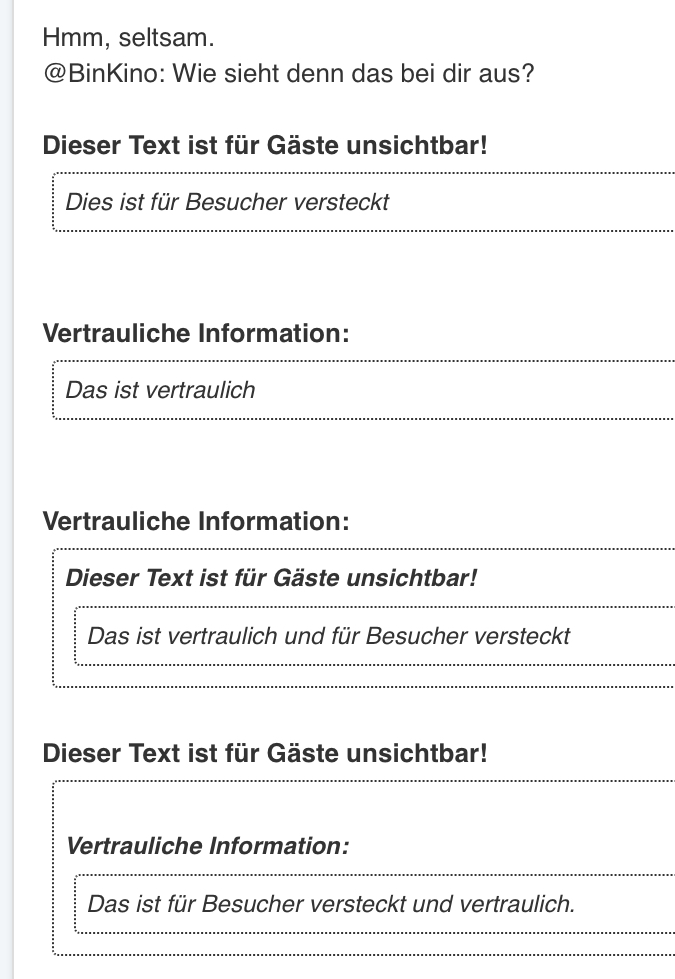 bei mir wird aber nur "Dieser Text ist für Gäste unsichtbar!" und "Diese Nachricht enthält vertrauliche Informationen" und ich bin mir sehr sicher in bin angemeldet. oder gibts da ein Level 2 "nicht Gast sein" ?