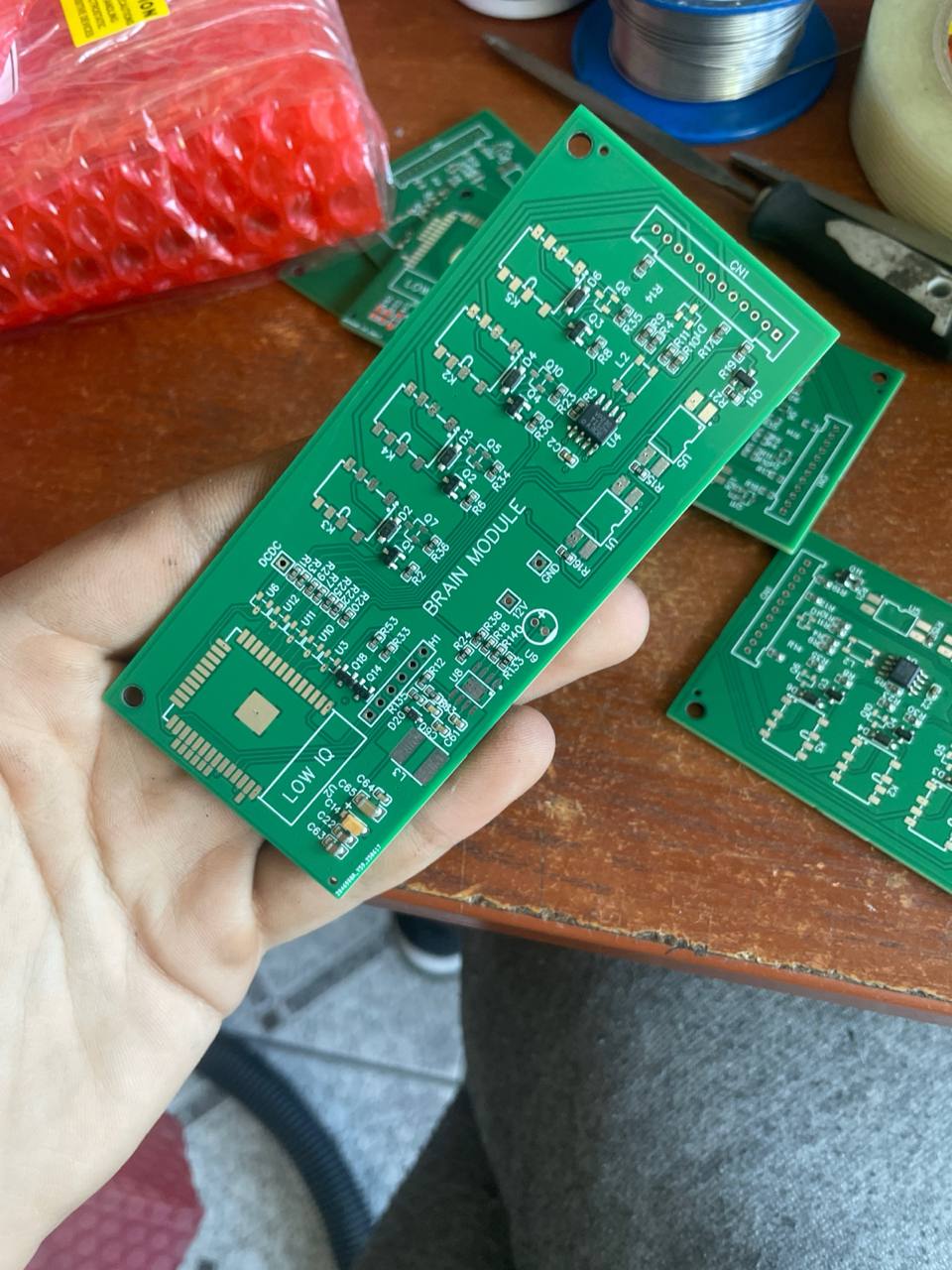 P. S. Auf dem Foto die ersten Testplatinen, in der finalen Version wird alles in einer Platine zusammengefasst und nach allen Designregeln hergestellt