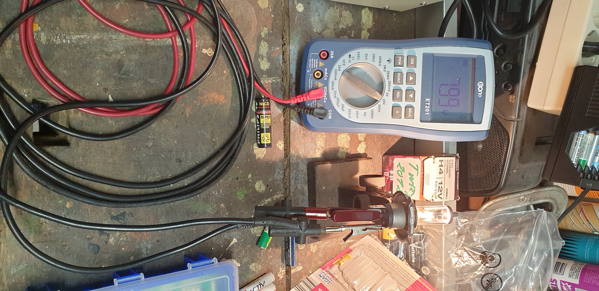Dann alle Zellen mit Hallogen Birne 12V / 60W , 30 Minuten entladen, Rest Entladespannung in Tabelle eingetragen.