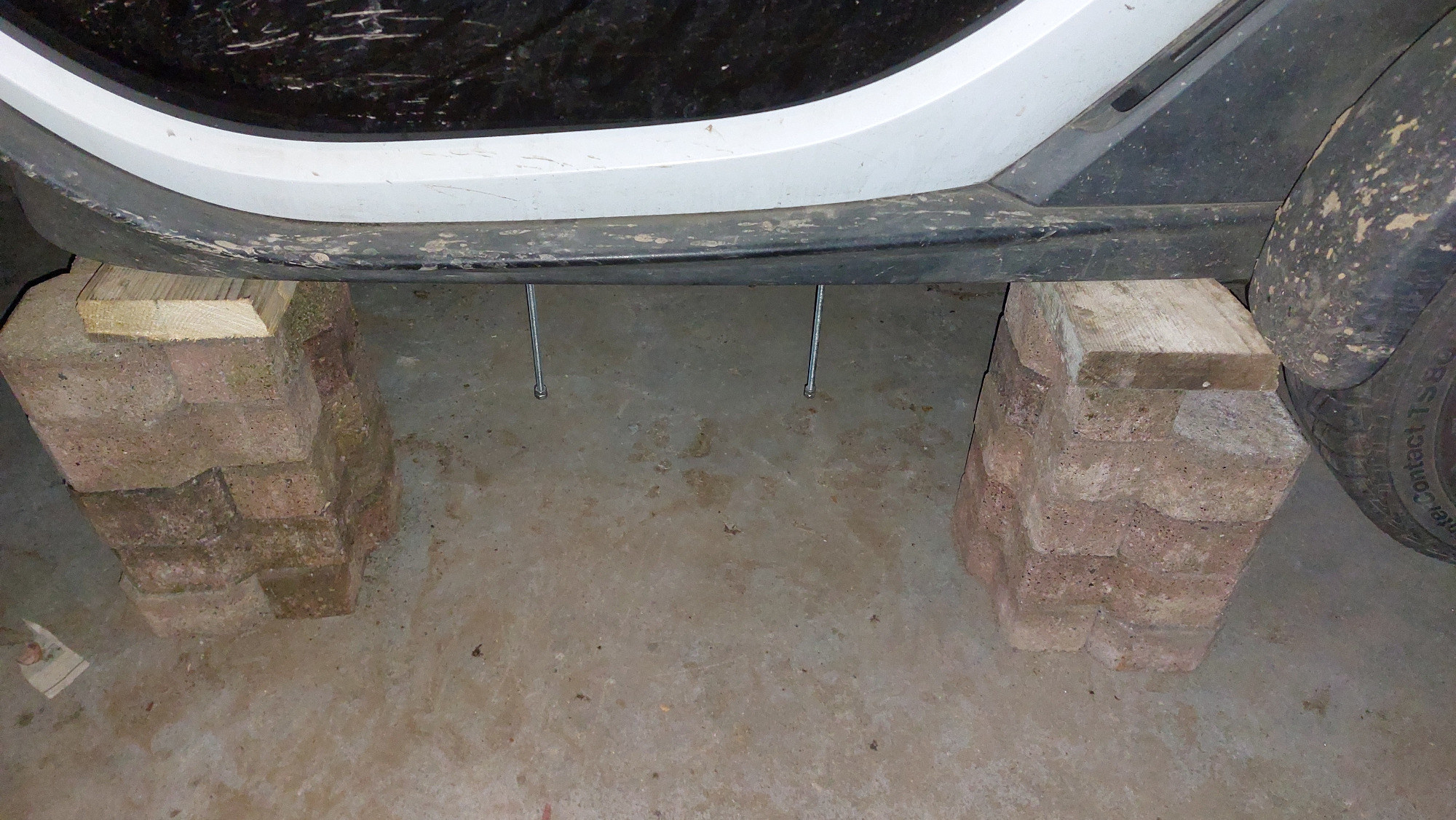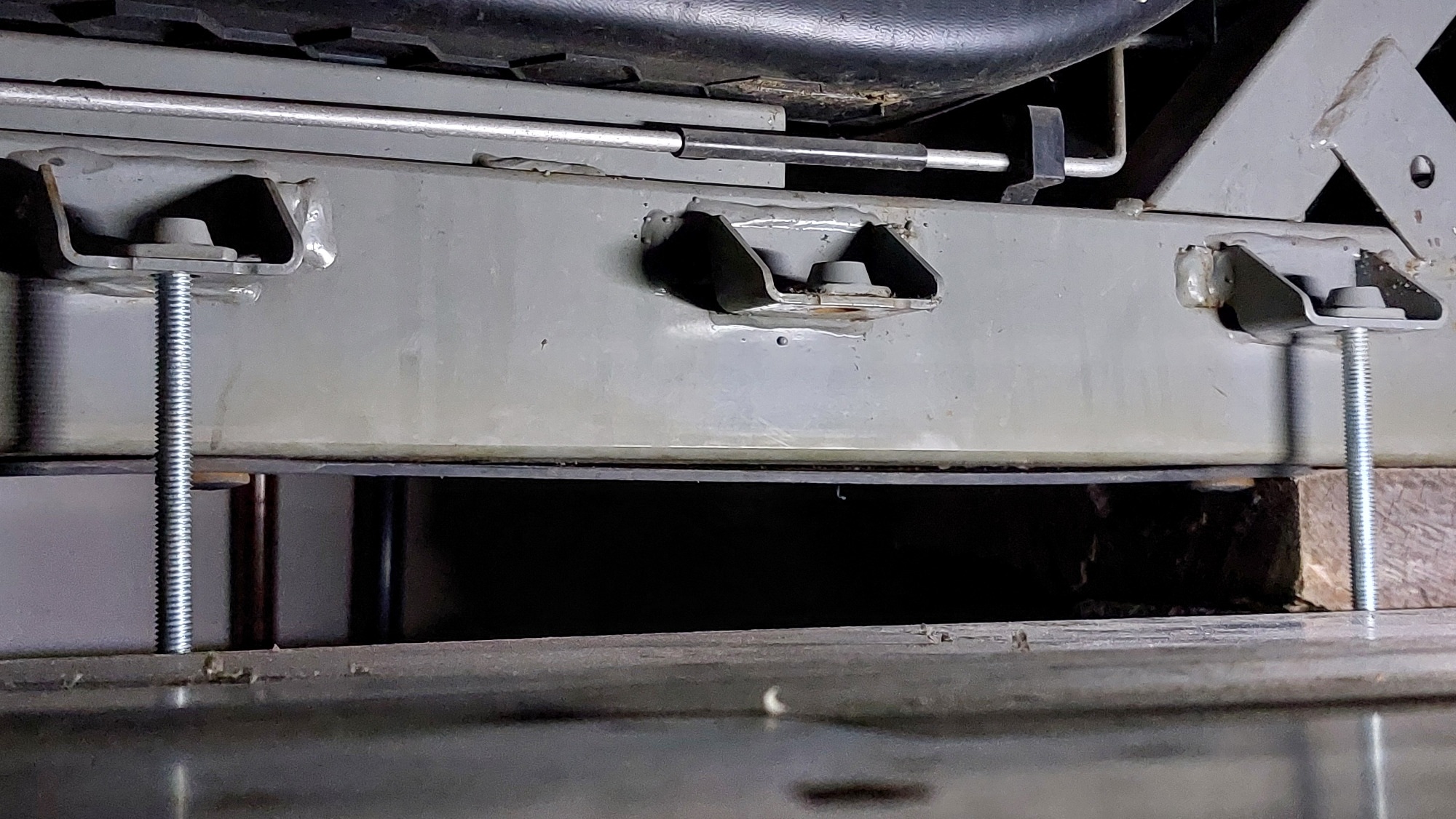 Seitenansicht der herunter ragenden Gewindestangen. Sie müssen bis auf wenige cm an den Boden hinunter reichen